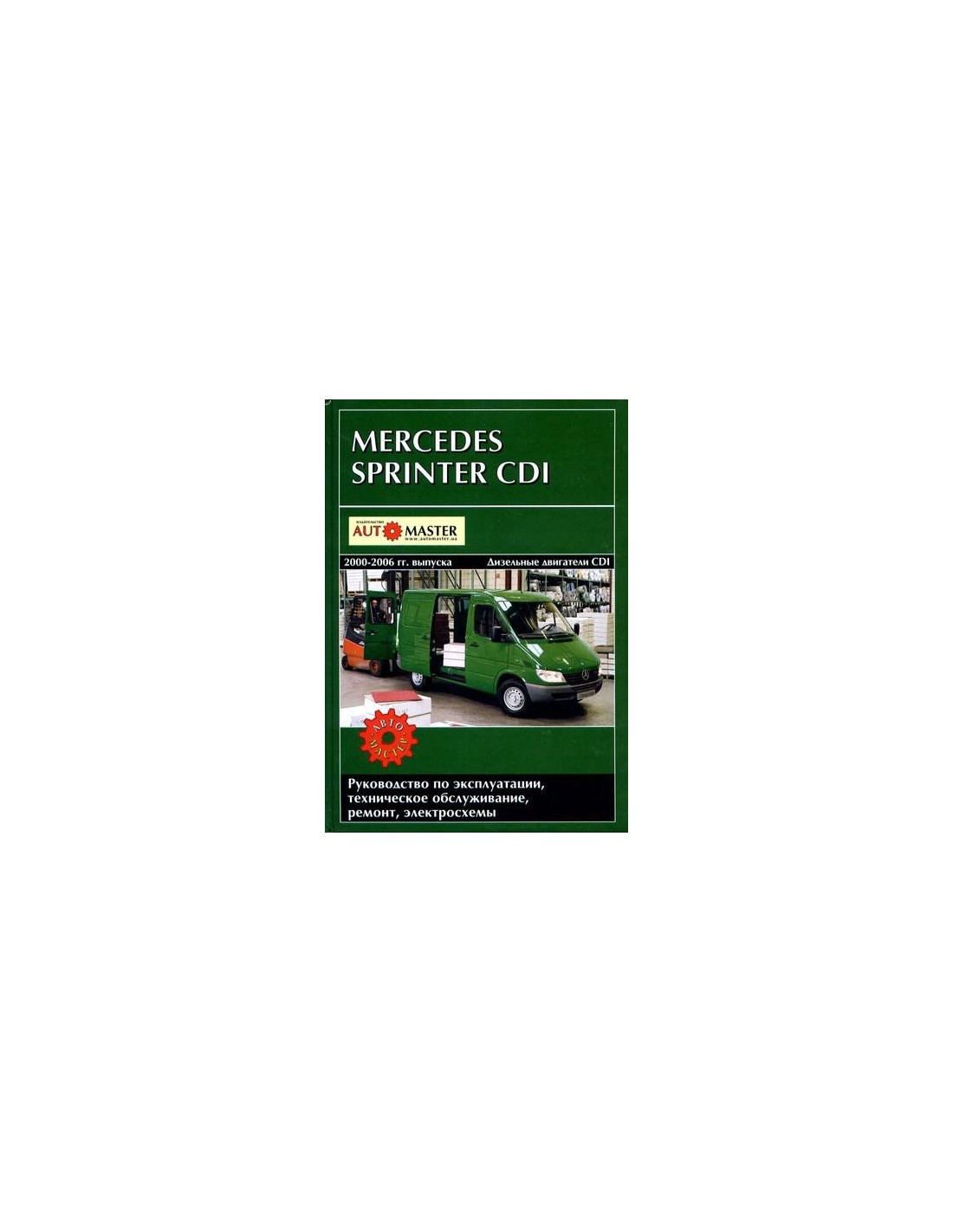Книга по ремонту Mercedes Benz Sprinter CDI 2000-2006 г ,содержит руководство по эксплуатации,общие сведения об устройстве автомобиля,рекомендации по техническому обслуживанию автомобиля,диагностике ремонту и регулировке элементов систем двигателя,систему смазки и охлаждения,запуска и зарядки,элементов механических и автоматических коробок передач,тормозной системы,включая антиблокировочную систему тормозов,рулевого управления,подвески,кузовных элементов, систем кондиционирования и вентиляции.