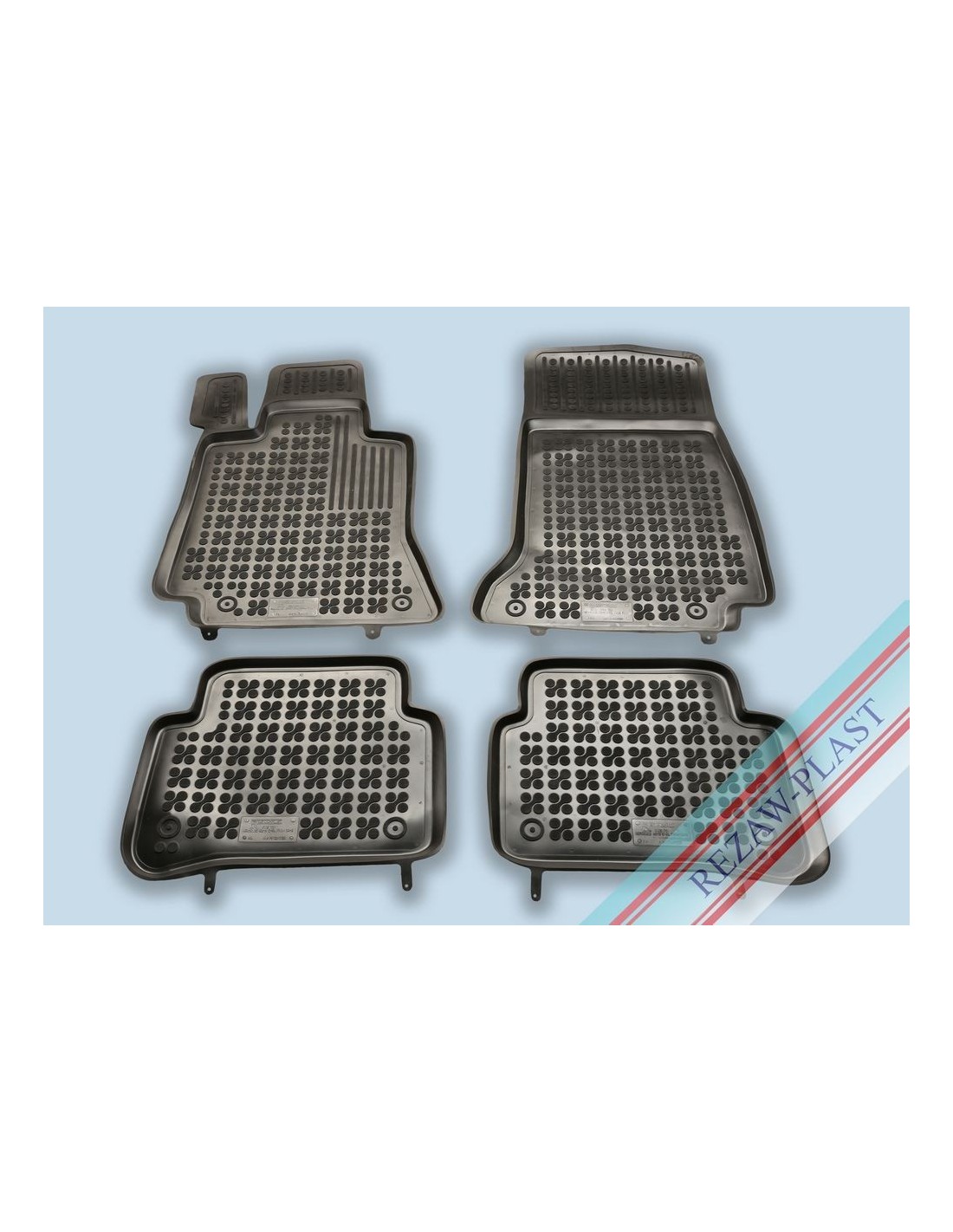 Коврики в салон на Мерседес Бенц E W213 (16-) польской фирмы "Rezaw-Plast" точно соответствуют очертаниям пола автомобиля и не требуют подрезки.Коврики имеют высокий бортик,что является хорошим решением в нашем климате с повышенной влажностью.Водительский коврик имеет особую форму не допускающий защемление педалей под коврик.Лицевая поверхность ковриков имеет антискользящее покрытие,которая делает эксплуатацию ковриков более комфортной и безопасной.Для исключения перемещения ковриков предусмотрены места для установки штатного крепления(приобретается отдельно).