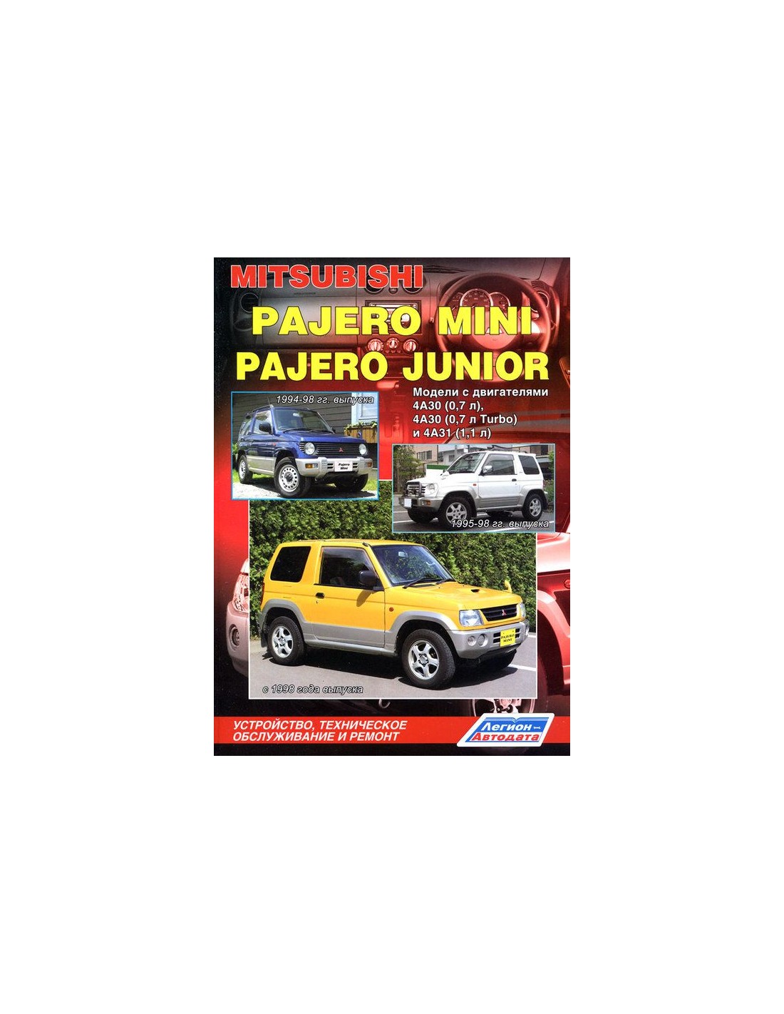 Книга по ремонту Mitsubishi Pajero Mini / Junior 1994-98 г.,содержит руководство по эксплуатации,подробные сведения по техническому обслуживанию автомобиля,диагностике ремонту и регулировке элементов систем двигателя,в том числе электронного управления двигателем,систему смазки и охлаждения,запуска и зарядки,элементов механических и автоматических коробок передач,раздаточной коробки,тормозной системы,включая антиблокировочную систему тормозов,рулевого управления,подвески,кузовных элементов, систем кондиционирования и вентиляции.