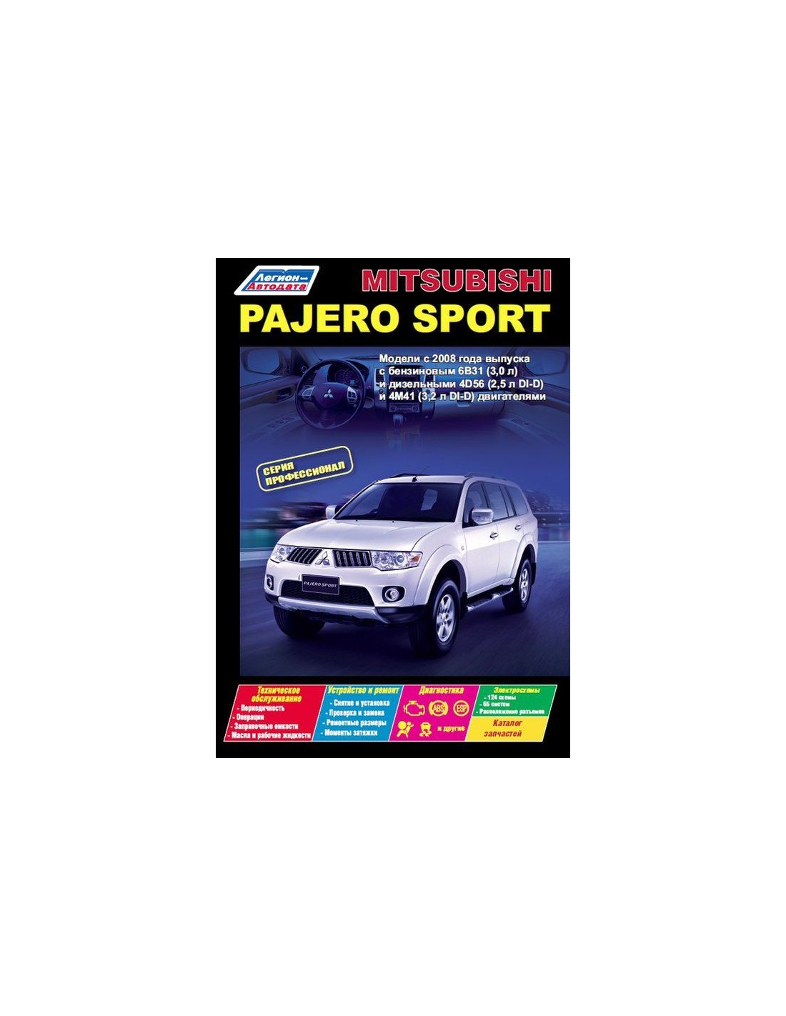 Книга по ремонту Mitsubishi Pajero Sport с 2008 г.,содержит руководство по эксплуатации,подробные сведения по техническому обслуживанию автомобиля,диагностике ремонту и регулировке элементов систем двигателя,в том числе электронного управления двигателем,систему смазки и охлаждения,запуска и зарядки,элементов механических и автоматических коробок передач,раздаточной коробки,тормозной системы,включая антиблокировочную систему тормозов,рулевого управления,подвески,кузовных элементов, систем кондиционирования и вентиляции.