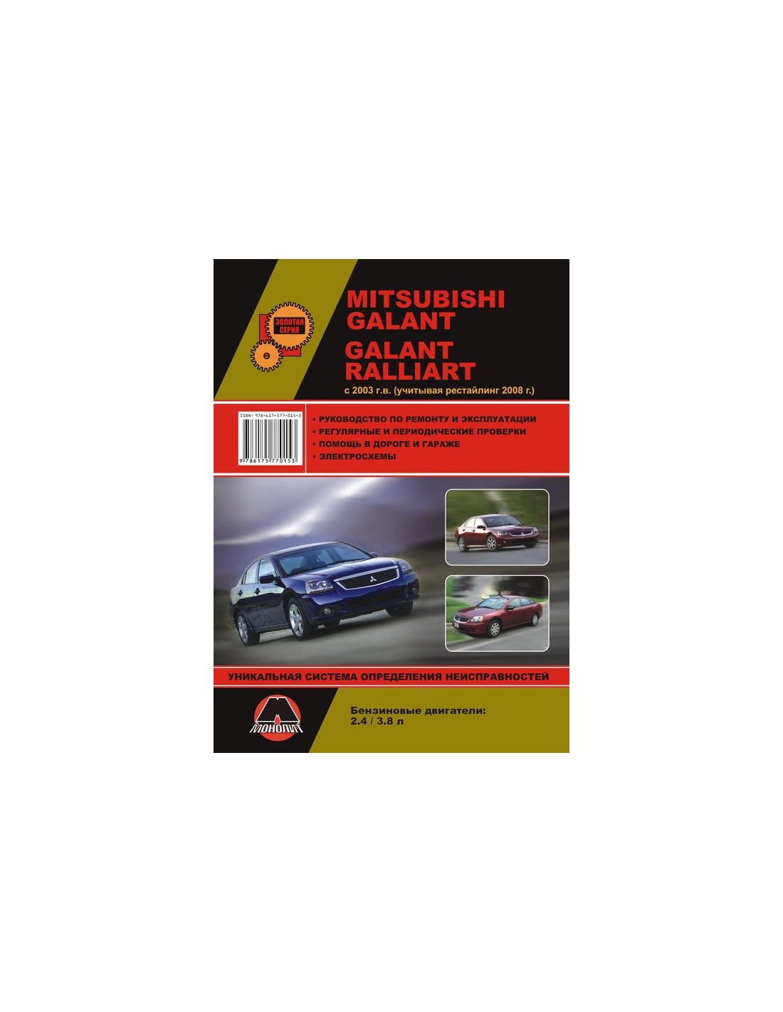 Книга по ремонту Mitsubishi Galant/Galant Ralliart c 2003г, рестайлинг 2008г ,содержит руководство по эксплуатации,подробные сведения по техническому обслуживанию автомобиля,диагностике ремонту и регулировке элементов систем двигателя,в том числе электронного управления двигателем,систему смазки и охлаждения,запуска и зарядки,элементов механических и автоматических коробок передач,раздаточной коробки,тормозной системы,включая антиблокировочную систему тормозов,рулевого управления,подвески,кузовных элементов, систем кондиционирования и вентиляции.