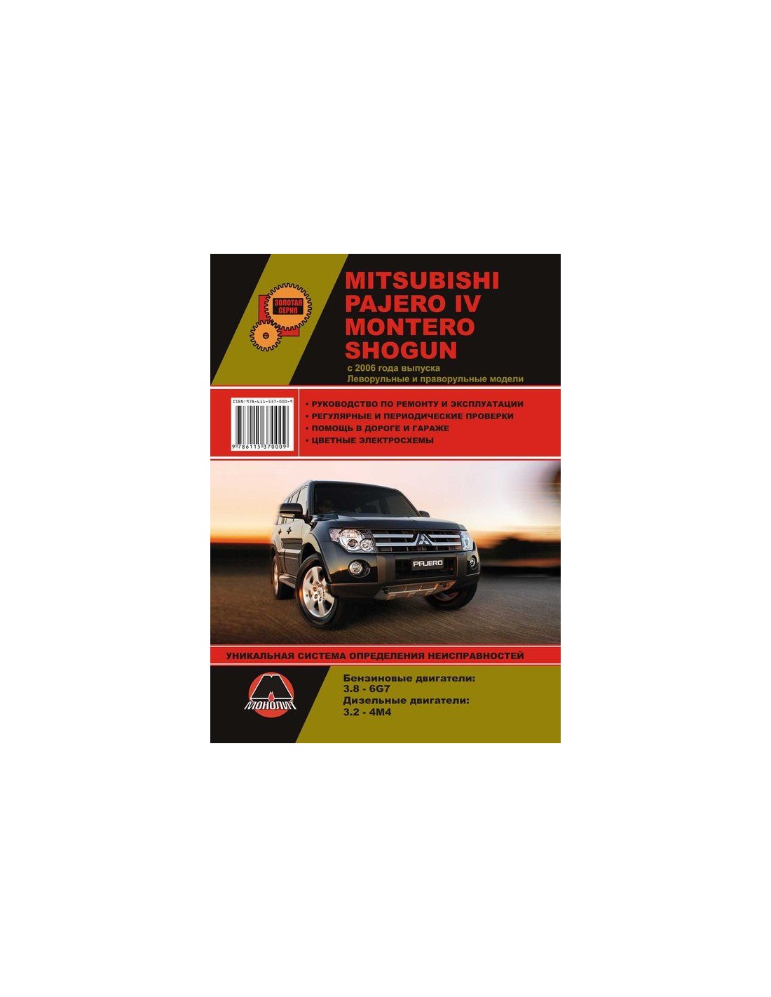 Книга по ремонту Mitsubishi Pajero IV/ Montero/ Shogun c 2006 г ,содержит руководство по эксплуатации,подробные сведения по техническому обслуживанию автомобиля,диагностике ремонту и регулировке элементов систем двигателя,в том числе электронного управления двигателем,систему смазки и охлаждения,запуска и зарядки,элементов механических и автоматических коробок передач,раздаточной коробки,тормозной системы,включая антиблокировочную систему тормозов,рулевого управления,подвески,кузовных элементов, систем кондиционирования и вентиляции.