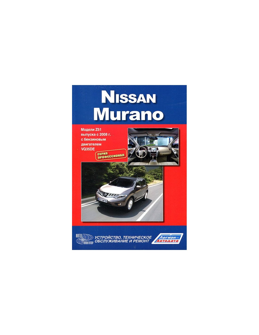 Книга по ремонту Nissan Murano с 2008 г ,содержит руководство по эксплуатации,подробные сведения по техническому обслуживанию автомобиля,диагностике ремонту и регулировке элементов систем двигателя,в том числе электронного управления двигателем,систему смазки и охлаждения,запуска и зарядки,элементов механических и автоматических коробок передач,раздаточной коробки,тормозной системы,включая антиблокировочную систему тормозов,рулевого управления,подвески,кузовных элементов, систем кондиционирования и вентиляции.