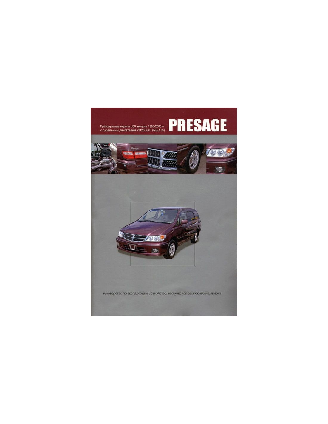 Устройство автомобиля,возможные неисправности и методы их устранения, сопрягаемые размеры основных деталей и пределы их допустимого износа,рекомендуемое смазочные материалы,рабочие жидкости и каталожные номера расходных запчастей,необходимых для технического обслуживания,размеры рекомендуемых и допускаемых шин и дисков-все это можно найти на страницах издания "Автонавигатор" Книга автомобильная на Nissan PRESAGE 1998-03 г