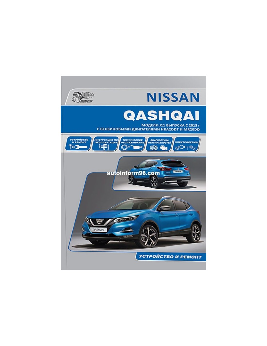 Книга по ремонту Nissan Qashqai 2 с 2013 г ,содержит руководство по эксплуатации,подробные сведения по техническому обслуживанию автомобиля,диагностике ремонту и регулировке элементов систем двигателя,в том числе электронного управления двигателем,систему смазки и охлаждения,запуска и зарядки,элементов механических и автоматических коробок передач,раздаточной коробки,тормозной системы,включая антиблокировочную систему тормозов,рулевого управления,подвески,кузовных элементов, систем кондиционирования и вентиляции.