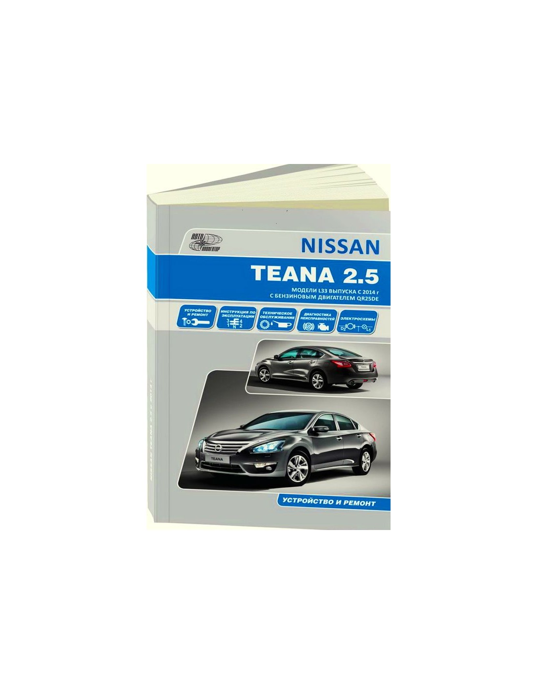 Книга по ремонту Nissan Teana L33 с 2014 г ,содержит руководство по эксплуатации,подробные сведения по техническому обслуживанию автомобиля,диагностике ремонту и регулировке элементов систем двигателя,в том числе электронного управления двигателем,систему смазки и охлаждения,запуска и зарядки,элементов механических и автоматических коробок передач,раздаточной коробки,тормозной системы,включая антиблокировочную систему тормозов,рулевого управления,подвески,кузовных элементов, систем кондиционирования и вентиляции.