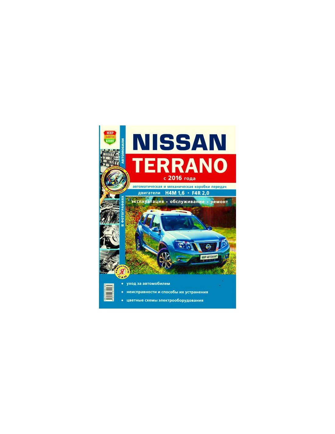Книга по ремонту Nissan Terrano II c 2016 г., ч/б . ,содержит руководство по эксплуатации,общие сведения об устройстве автомобиля,рекомендации по техническому обслуживанию автомобиля,диагностике ремонту и регулировке элементов систем двигателя,систему смазки и охлаждения,запуска и зарядки,элементов механических и автоматических коробок передач,тормозной системы,включая антиблокировочную систему тормозов,рулевого управления,подвески,кузовных элементов, систем кондиционирования и вентиляции.