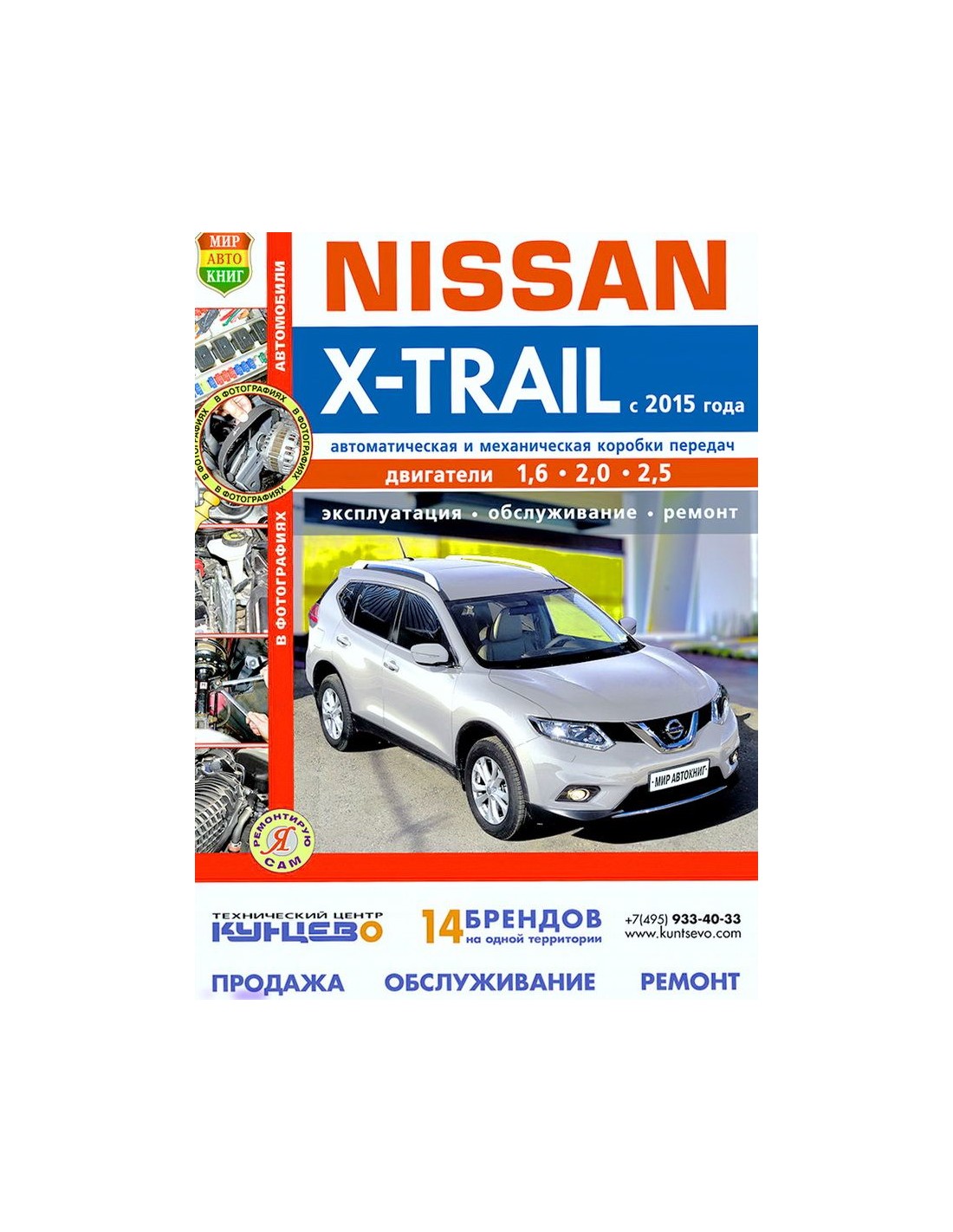 Книга по ремонту Nissan X-Trail с 2015 г. ,содержит руководство по эксплуатации,общие сведения об устройстве автомобиля,рекомендации по техническому обслуживанию автомобиля,диагностике ремонту и регулировке элементов систем двигателя,систему смазки и охлаждения,запуска и зарядки,элементов механических и автоматических коробок передач,тормозной системы,включая антиблокировочную систему тормозов,рулевого управления,подвески,кузовных элементов, систем кондиционирования и вентиляции.