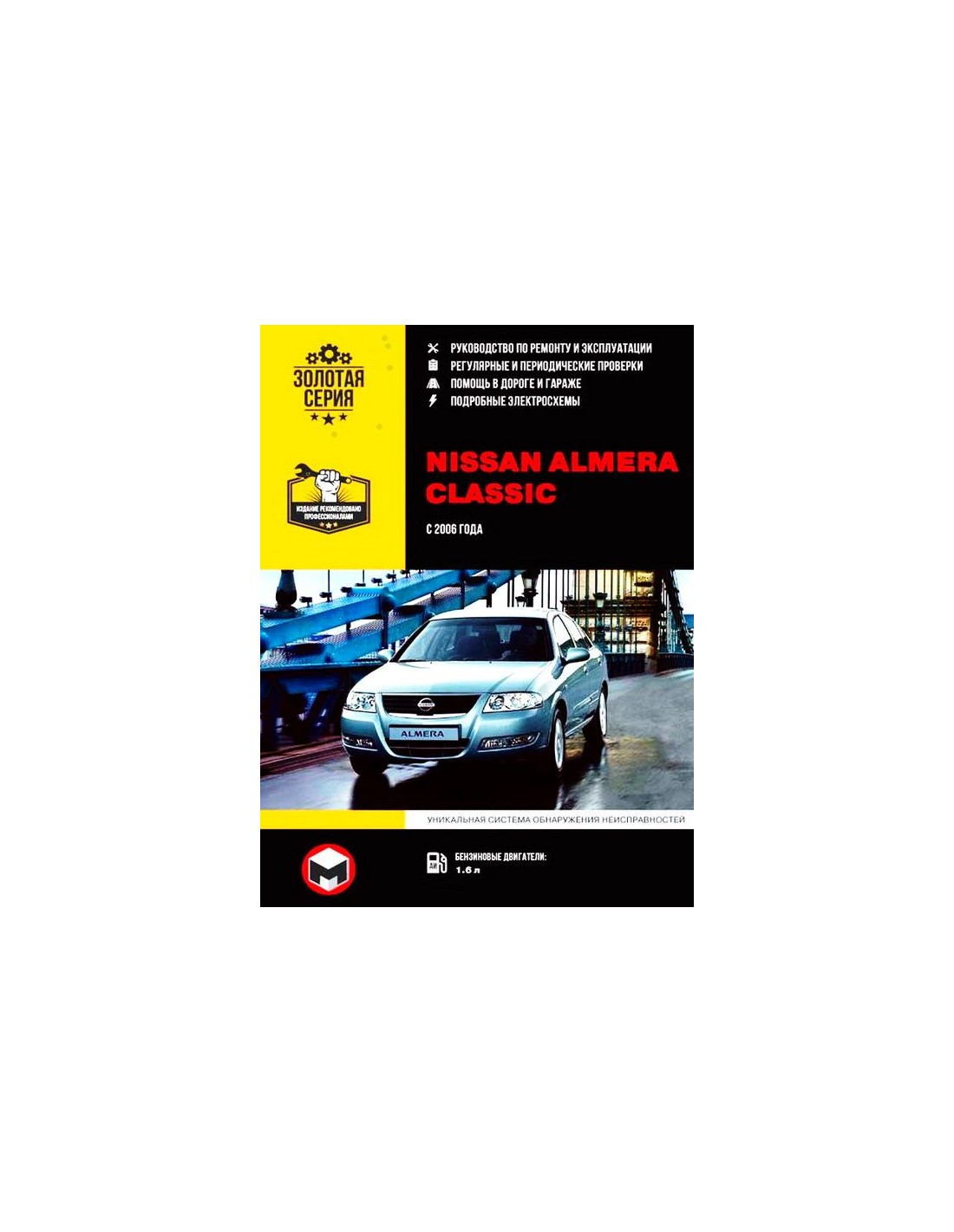 Книга по ремонту Nissan Almera Classic с 2006 г ,содержит руководство по эксплуатации,подробные сведения по техническому обслуживанию автомобиля,диагностике ремонту и регулировке элементов систем двигателя,в том числе электронного управления двигателем,систему смазки и охлаждения,запуска и зарядки,элементов механических и автоматических коробок передач,раздаточной коробки,тормозной системы,включая антиблокировочную систему тормозов,рулевого управления,подвески,кузовных элементов, систем кондиционирования и вентиляции.