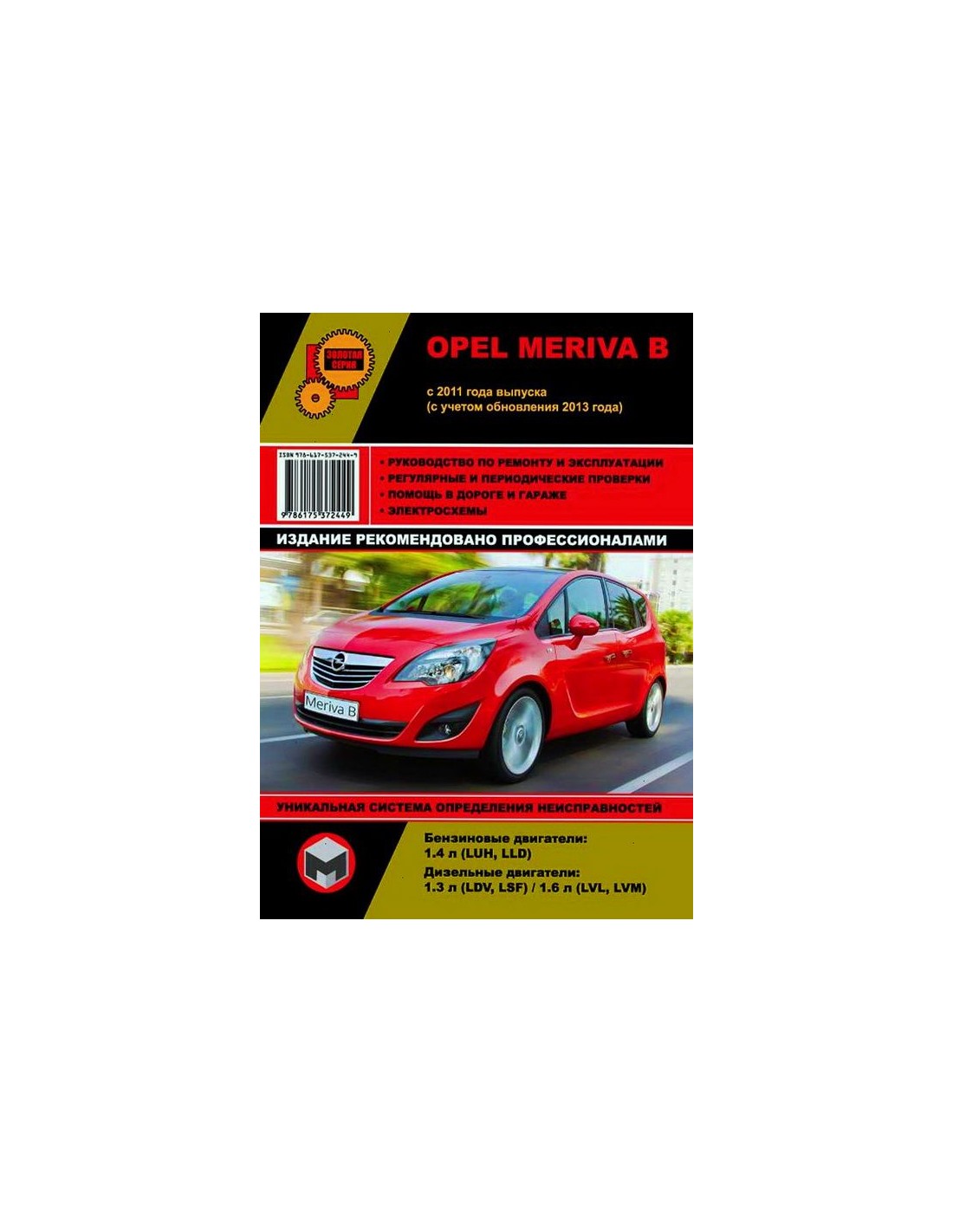 Книга по ремонту Opel Meriva с 2011 (+рестайлинг с 2013) ,содержит руководство по эксплуатации,подробные сведения по техническому обслуживанию автомобиля,диагностике ремонту и регулировке элементов систем двигателя,в том числе электронного управления двигателем,систему смазки и охлаждения,запуска и зарядки,элементов механических и автоматических коробок передач,раздаточной коробки,тормозной системы,включая антиблокировочную систему тормозов,рулевого управления,подвески,кузовных элементов, систем кондиционирования и вентиляции.