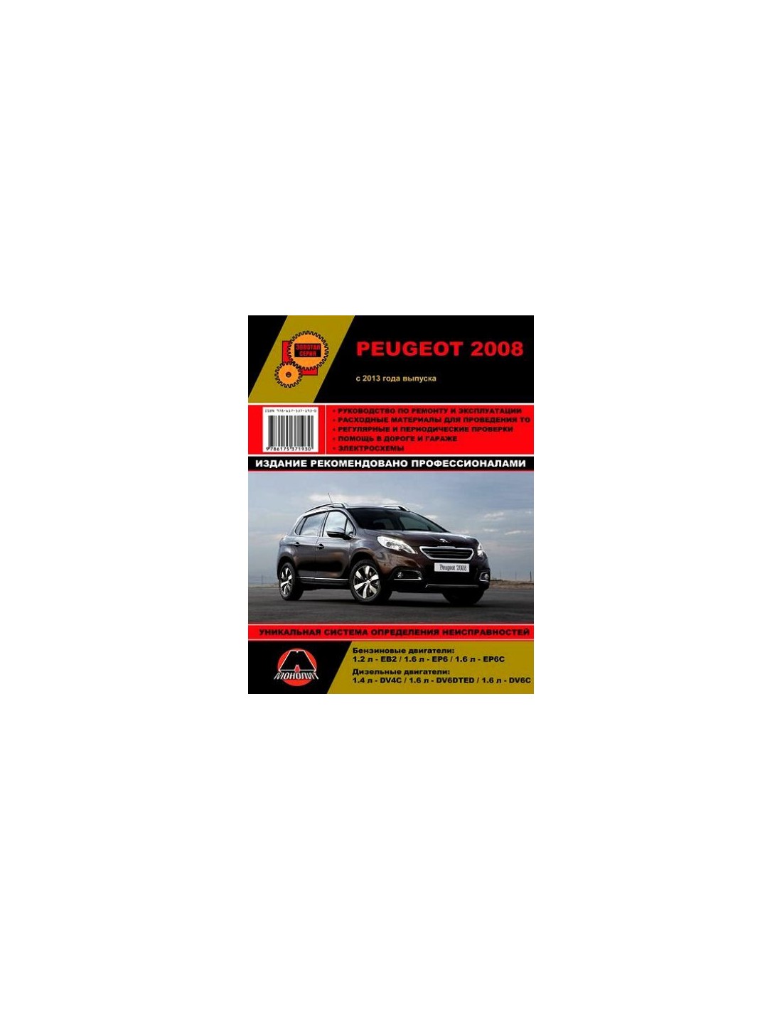 Книга по ремонту Peugeot 2008 (с 2013) ,содержит руководство по эксплуатации,подробные сведения по техническому обслуживанию автомобиля,диагностике ремонту и регулировке элементов систем двигателя,в том числе электронного управления двигателем,систему смазки и охлаждения,запуска и зарядки,элементов механических и автоматических коробок передач,раздаточной коробки,тормозной системы,включая антиблокировочную систему тормозов,рулевого управления,подвески,кузовных элементов, систем кондиционирования и вентиляции.