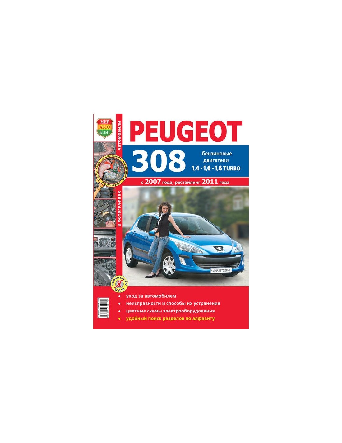 Книга по ремонту Peugeot 308 (с 2007 г. / рестайлинг 2011 г.). ,содержит руководство по эксплуатации,общие сведения об устройстве автомобиля,рекомендации по техническому обслуживанию автомобиля,диагностике ремонту и регулировке элементов систем двигателя,систему смазки и охлаждения,запуска и зарядки,элементов механических и автоматических коробок передач,тормозной системы,включая антиблокировочную систему тормозов,рулевого управления,подвески,кузовных элементов, систем кондиционирования и вентиляции.