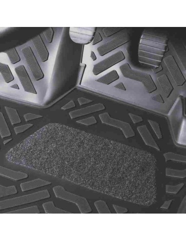 Коврики российского производителя "Элерон" изготовлены в салон Renault Kangoo II Fourgon (2007 и не подходят на другой автомобиль.Коврики изготовлены в формате 3D(сплошная перемычка между площадкой отдыха левой ноги и педальным узлом) и имеют:уникальный подпятник из износоустойчивого материала в зоне интенсивного износа,который обеспечивает продолжительный срок службы изделия,а в зимний период предотвращает образования луж под ногами;перемычка на тоннель,совмещенная с одним из задних ковриков;места для штатных креплений,а так же для установки дополнительного крепежа водительского ковра (крепеж приобретается отдельно);высокий борт в 32мм.