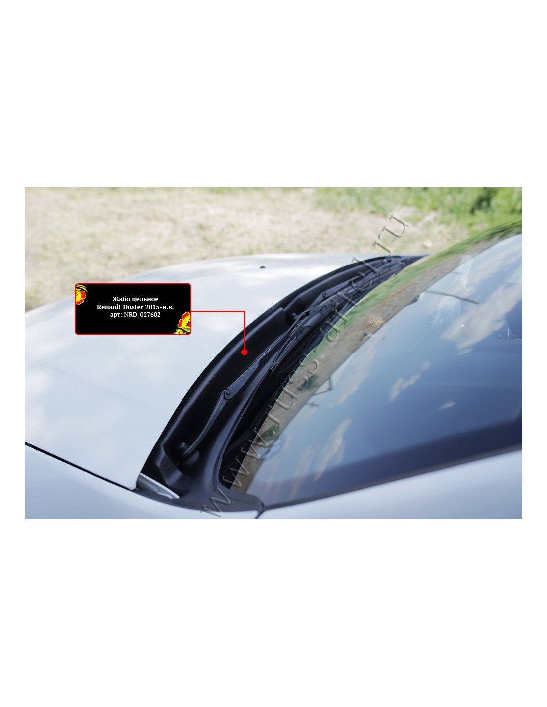 Жабо Рено Дастер является декоративным и защитным элементом автомобиля, который защищает фильтр авто от попадания жидкости и талого снега, от реагентов и других веществ, способствующих появлению ржавчины и нарушению лакокрасочного покрытия автомобиля. Накладка устанавливается между лобовым стеклом и капотом с помощью двухстороннего скотча 3М. Подходит на автомобиль Renault Duster 2015г.