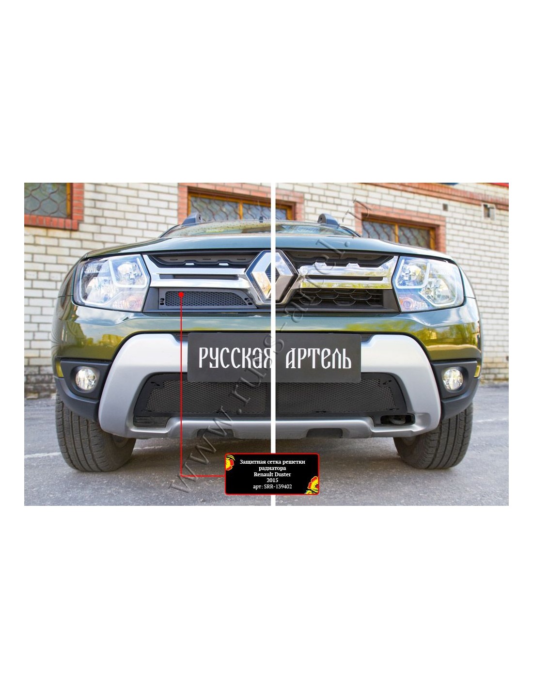 Защитная сетка решетки радиатора Renault Duster 2015- (I рестайлинг).Русская Артель