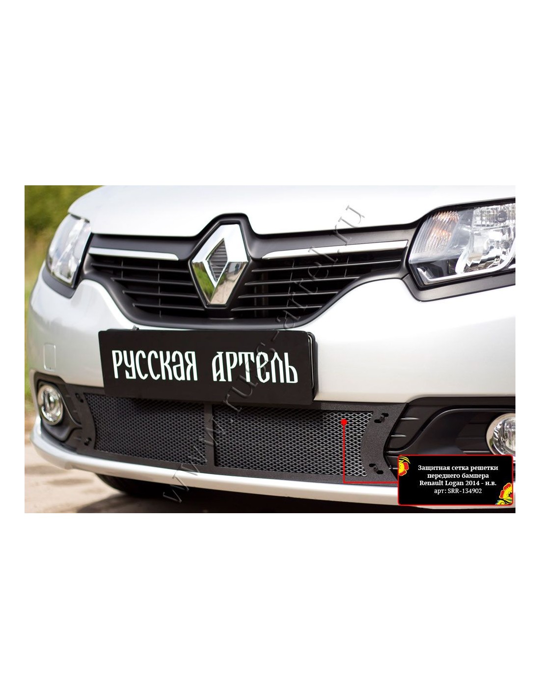 Защитная сетка решетки переднего бампера Renault Logan 2014-2017 (II дорестайлинг).Русская Артель