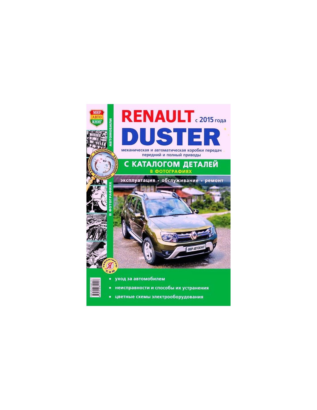 Книга по ремонту Renault Duster II c 2015 г. ,содержит руководство по эксплуатации,общие сведения об устройстве автомобиля,рекомендации по техническому обслуживанию автомобиля,диагностике ремонту и регулировке элементов систем двигателя,систему смазки и охлаждения,запуска и зарядки,элементов механических и автоматических коробок передач,тормозной системы,включая антиблокировочную систему тормозов,рулевого управления,подвески,кузовных элементов, систем кондиционирования и вентиляции.