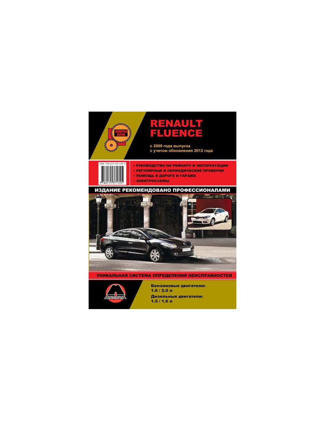 Книга по ремонту Renault Fluence (с 2009/ с 2012) ,содержит руководство по эксплуатации,подробные сведения по техническому обслуживанию автомобиля,диагностике ремонту и регулировке элементов систем двигателя,в том числе электронного управления двигателем,систему смазки и охлаждения,запуска и зарядки,элементов механических и автоматических коробок передач,раздаточной коробки,тормозной системы,включая антиблокировочную систему тормозов,рулевого управления,подвески,кузовных элементов, систем кондиционирования и вентиляции.