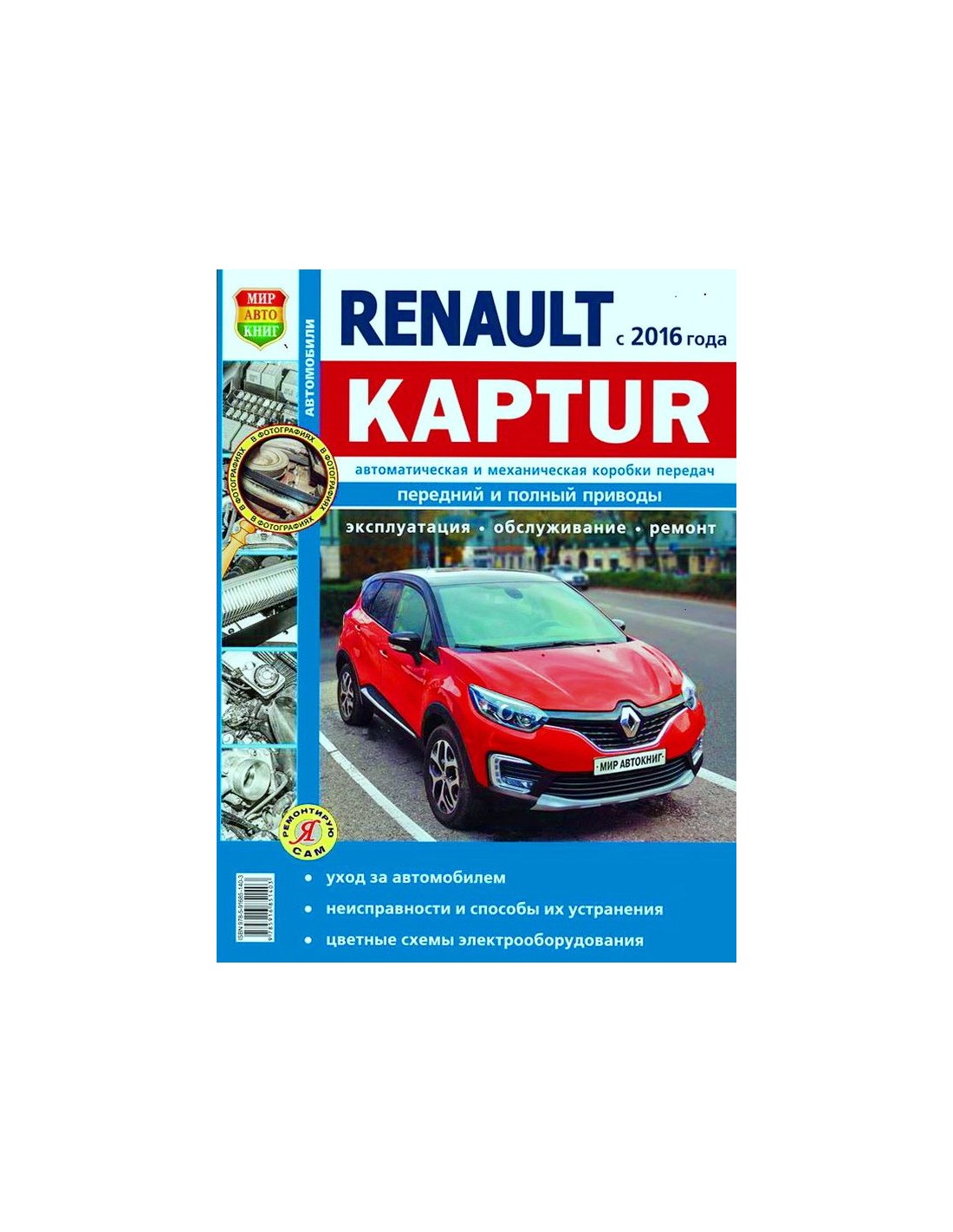 Книга по ремонту Renault Kaptur с 2016 г. ,содержит руководство по эксплуатации,общие сведения об устройстве автомобиля,рекомендации по техническому обслуживанию автомобиля,диагностике ремонту и регулировке элементов систем двигателя,систему смазки и охлаждения,запуска и зарядки,элементов механических и автоматических коробок передач,тормозной системы,включая антиблокировочную систему тормозов,рулевого управления,подвески,кузовных элементов, систем кондиционирования и вентиляции.