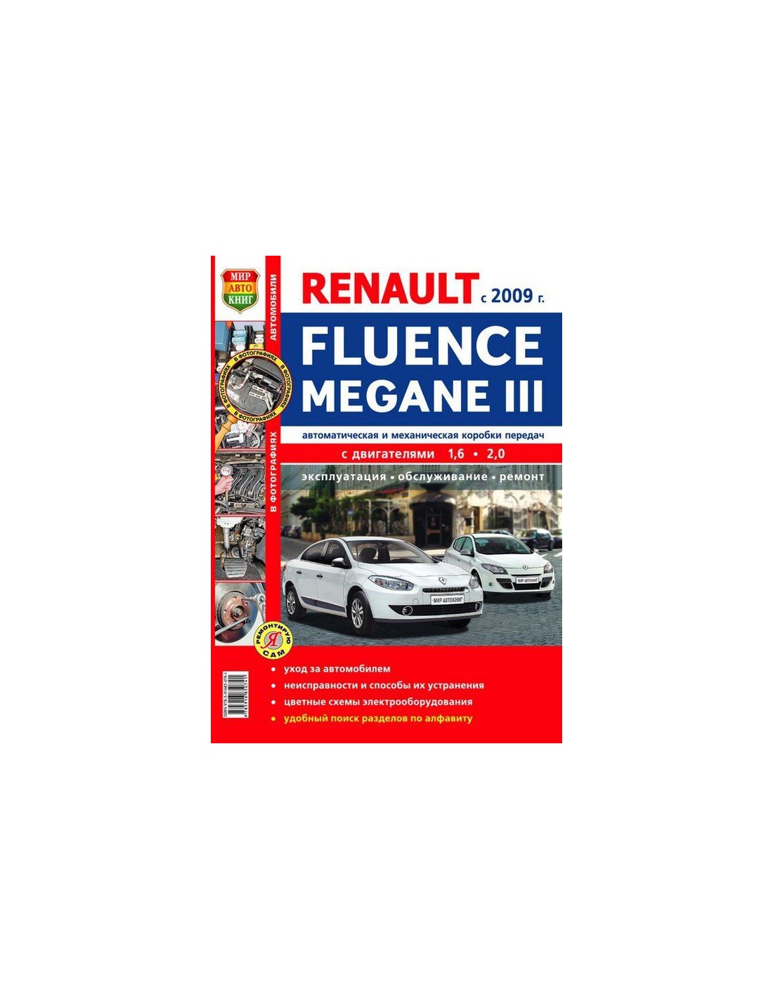 Книга по ремонту Renault Fluence / Megane III (с 2009 г.). ,содержит руководство по эксплуатации,общие сведения об устройстве автомобиля,рекомендации по техническому обслуживанию автомобиля,диагностике ремонту и регулировке элементов систем двигателя,систему смазки и охлаждения,запуска и зарядки,элементов механических и автоматических коробок передач,тормозной системы,включая антиблокировочную систему тормозов,рулевого управления,подвески,кузовных элементов, систем кондиционирования и вентиляции.