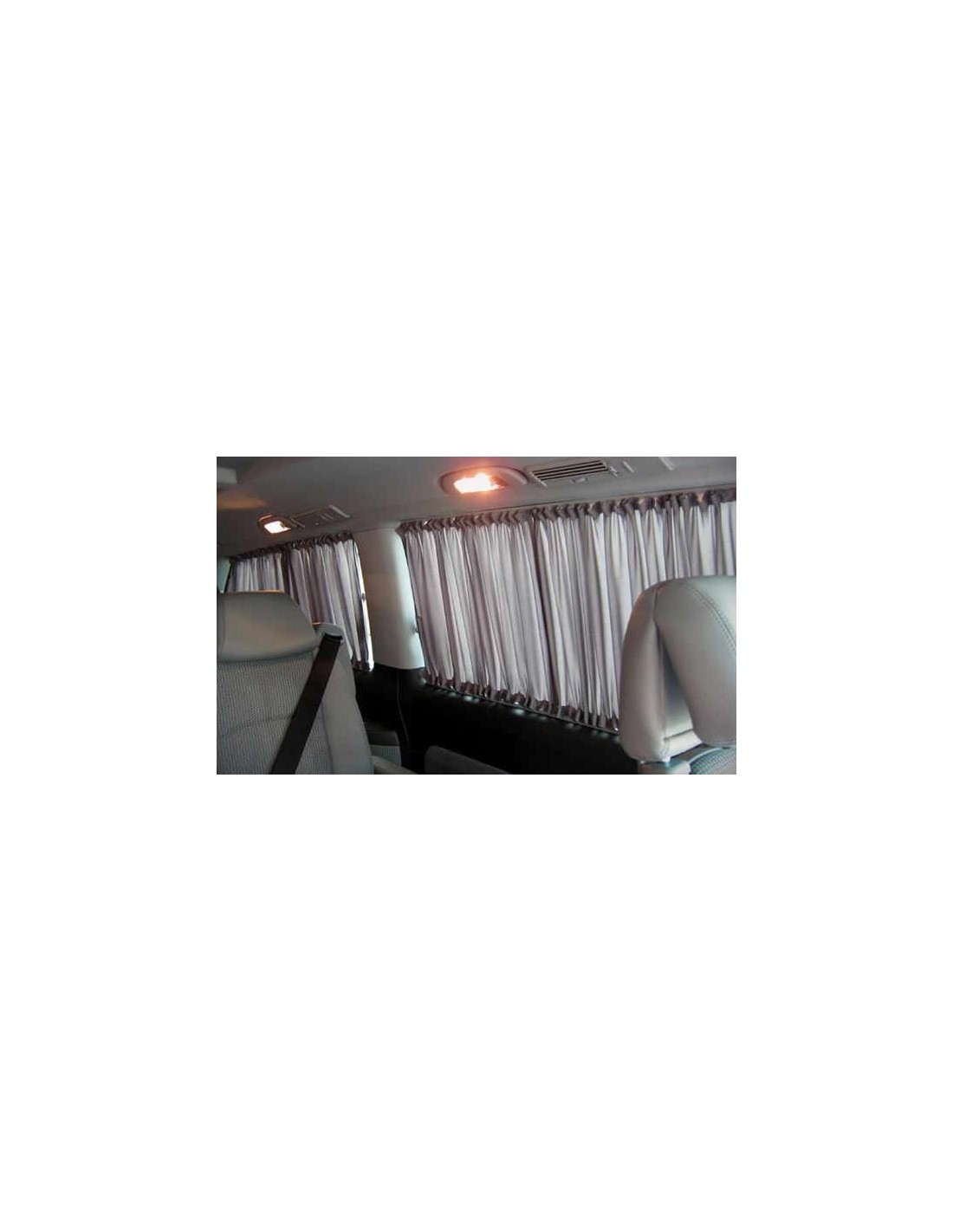 Шторки изготовлены под конкретную марку и модель микроавтобуса.Использование металлических направляющих и стрейчевой ткани,выбор цвета шторок создают впечатление заводской установки.