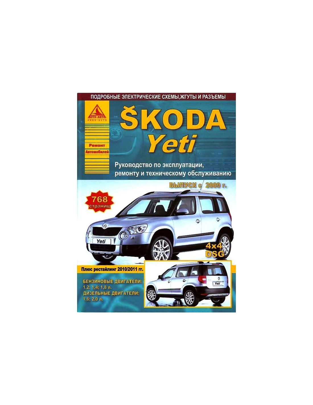 Книга по ремонту Skoda Yeti c 2009 рестайл. с 2011 г.,содержит руководство по эксплуатации,подробные сведения по техническому обслуживанию автомобиля,систему смазки и охлаждения,запуска и зарядки,элементов механических и автоматических коробок передач,тормозной системы,включая антиблокировочную систему тормозов,рулевого управления,подвески,кузовных элементов, систем кондиционирования и вентиляции.