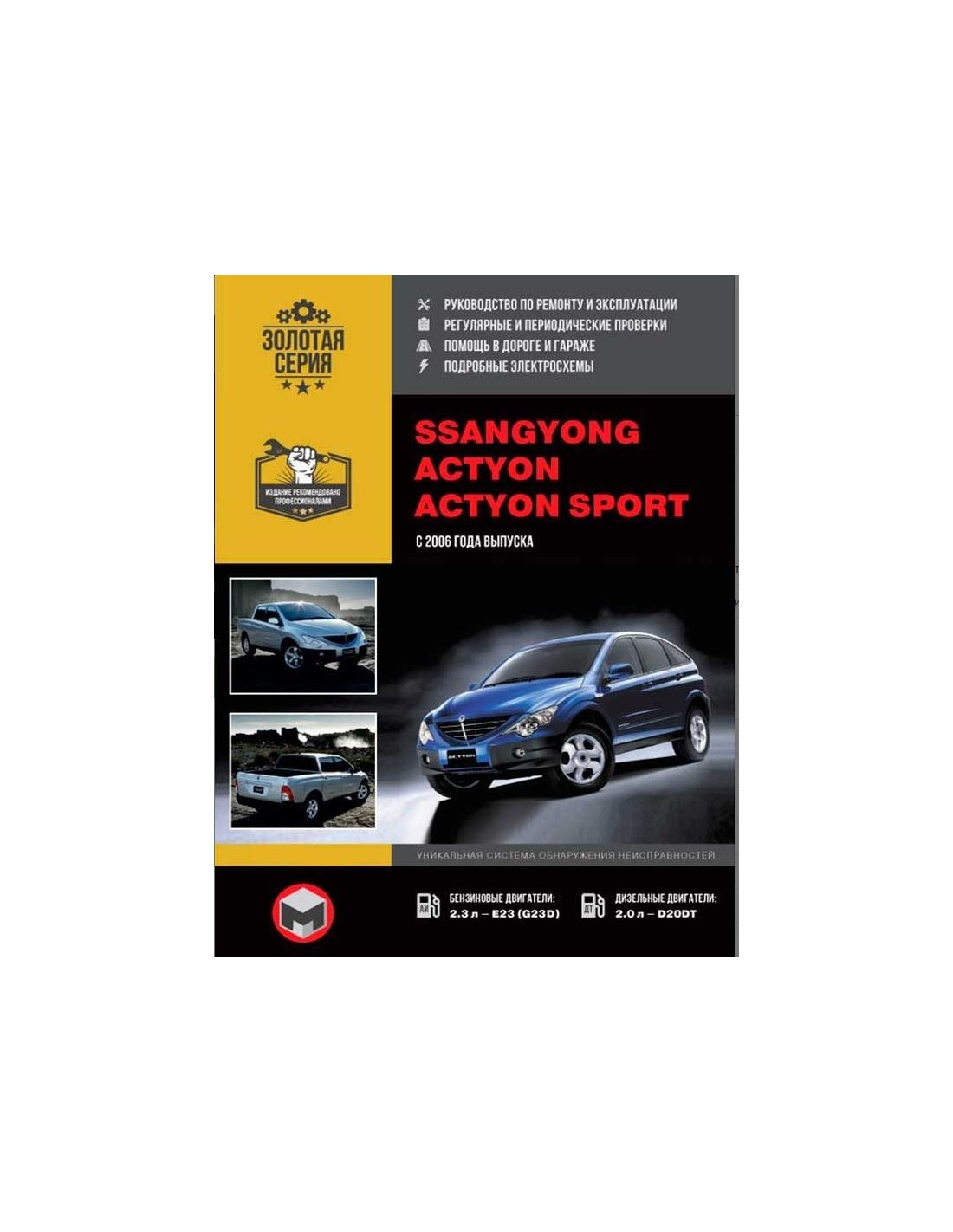 Книга по ремонту Ssang Yong Action /Sports с 2006 г ,содержит руководство по эксплуатации,подробные сведения по техническому обслуживанию автомобиля,диагностике ремонту и регулировке элементов систем двигателя,в том числе электронного управления двигателем,систему смазки и охлаждения,запуска и зарядки,элементов механических и автоматических коробок передач,раздаточной коробки,тормозной системы,включая антиблокировочную систему тормозов,рулевого управления,подвески,кузовных элементов, систем кондиционирования и вентиляции.