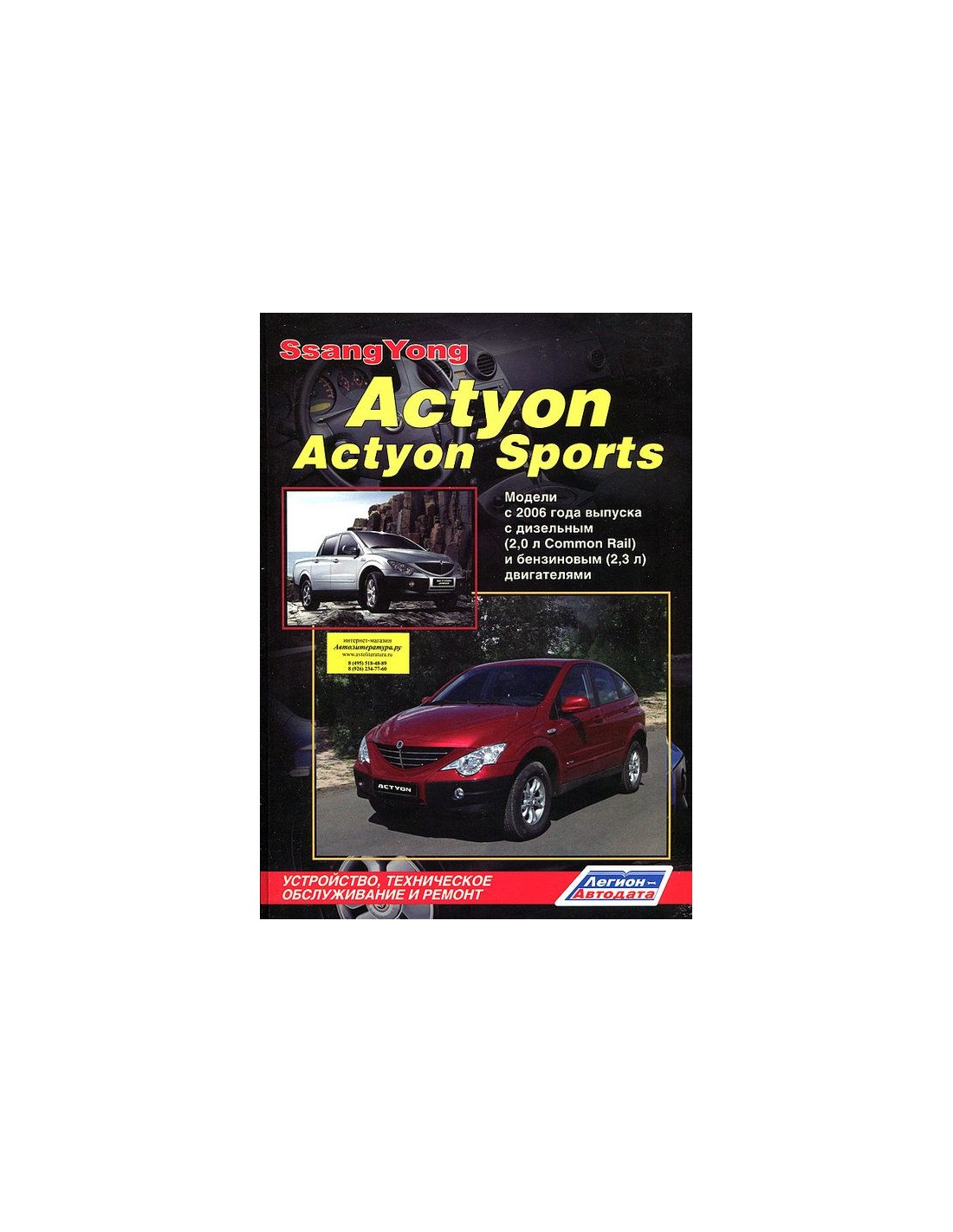 Книга по ремонту SsangYong Actyon 2006-10 г.,содержит руководство по эксплуатации,подробные сведения по техническому обслуживанию автомобиля,диагностике ремонту и регулировке элементов систем двигателя,в том числе электронного управления двигателем,систему смазки и охлаждения,запуска и зарядки,элементов механических и автоматических коробок передач,раздаточной коробки,тормозной системы,включая антиблокировочную систему тормозов,рулевого управления,подвески,кузовных элементов, систем кондиционирования и вентиляции.