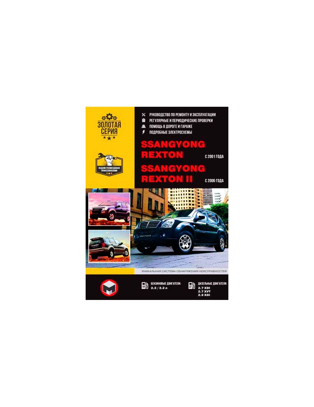 Книга по ремонту Ssang Yong Rexton с 2001 г /Rexton ll c 2006 г ,содержит руководство по эксплуатации,подробные сведения по техническому обслуживанию автомобиля,диагностике ремонту и регулировке элементов систем двигателя,в том числе электронного управления двигателем,систему смазки и охлаждения,запуска и зарядки,элементов механических и автоматических коробок передач,раздаточной коробки,тормозной системы,включая антиблокировочную систему тормозов,рулевого управления,подвески,кузовных элементов, систем кондиционирования и вентиляции.