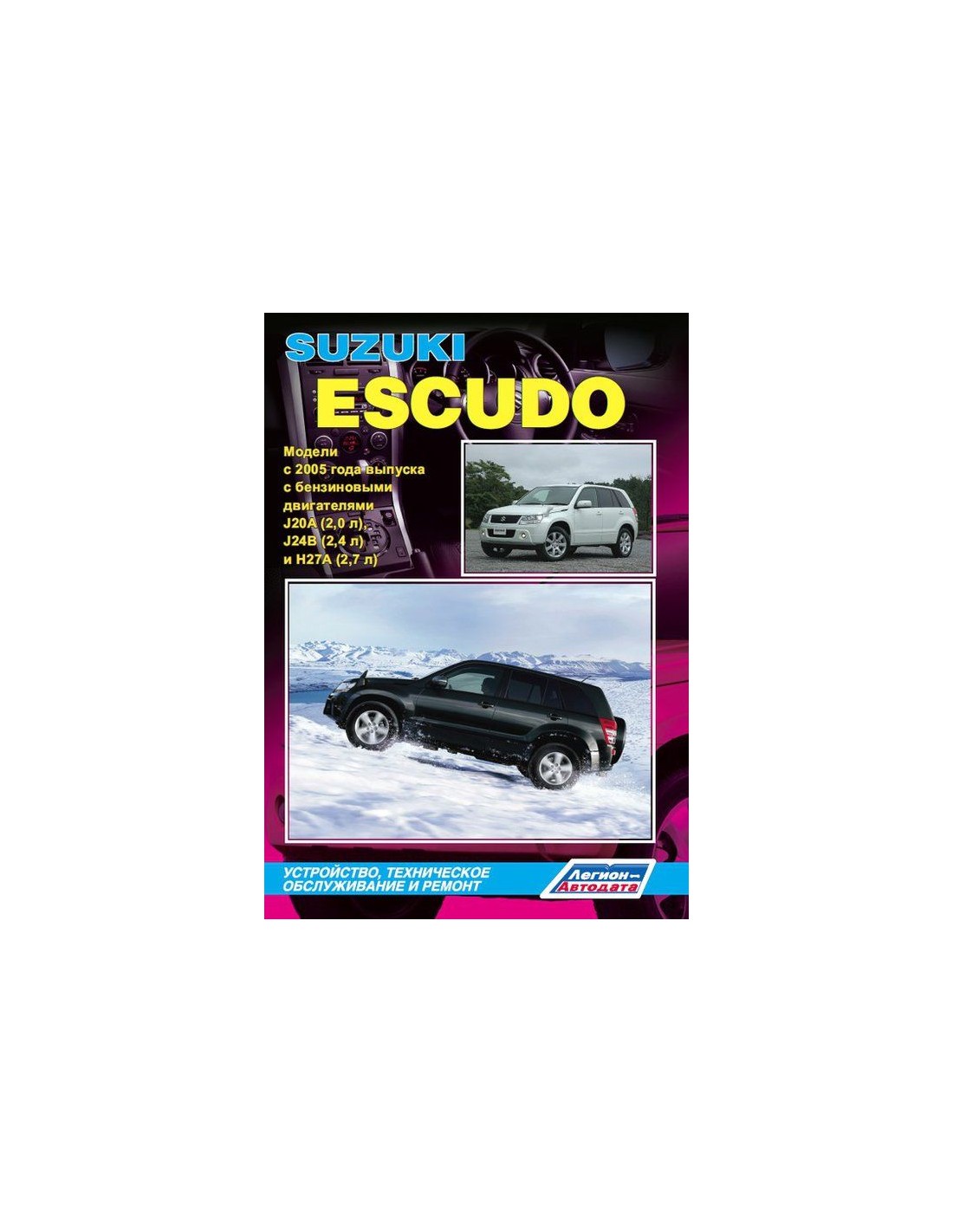 Устройство автомобиля,возможные неисправности и методы их устранения, сопрягаемые размеры основных деталей и пределы их допустимого износа,рекомендуемое смазочные материалы,рабочие жидкости и каталожные номера расходных запчастей,необходимых для технического обслуживания,размеры рекомендуемых и допускаемых шин и дисков-все это можно найти на страницах издания "Легион-Автодата" Книга автомобильная на Suzuki Escudo с 2005 г.
