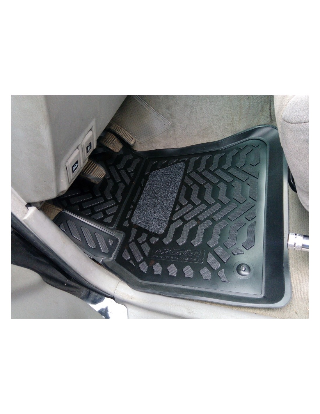 Коврики российского производителя "Элерон" изготовлены в салон Toyota LC 100 (1998-2007)/Lexus LX470 (1998–2007) (3D с подпятником) и не подходят на другой автомобиль.Коврики изготовлены в формате 3D(сплошная перемычка между площадкой отдыха левой ноги и педальным узлом) и имеют:уникальный подпятник из износоустойчивого материала в зоне интенсивного износа,который обеспечивает продолжительный срок службы изделия,а в зимний период предотвращает образования луж под ногами;перемычка на тоннель,совмещенная с одним из задних ковриков;места для штатных креплений,а так же для установки дополнительного крепежа водительского ковра (крепеж приобретается отдельно);высокий борт в 32мм.