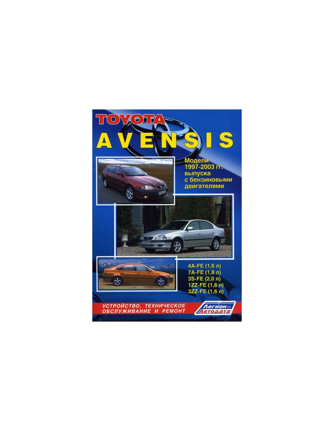 Устройство автомобиля,возможные неисправности и методы их устранения, сопрягаемые размеры основных деталей и пределы их допустимого износа,рекомендуемое смазочные материалы,рабочие жидкости и каталожные номера расходных запчастей,необходимых для технического обслуживания,размеры рекомендуемых и допускаемых шин и дисков-все это можно найти на страницах издания "Легион-Автодата" Книга автомобильная на Toyota Avensis 1997-03 г.