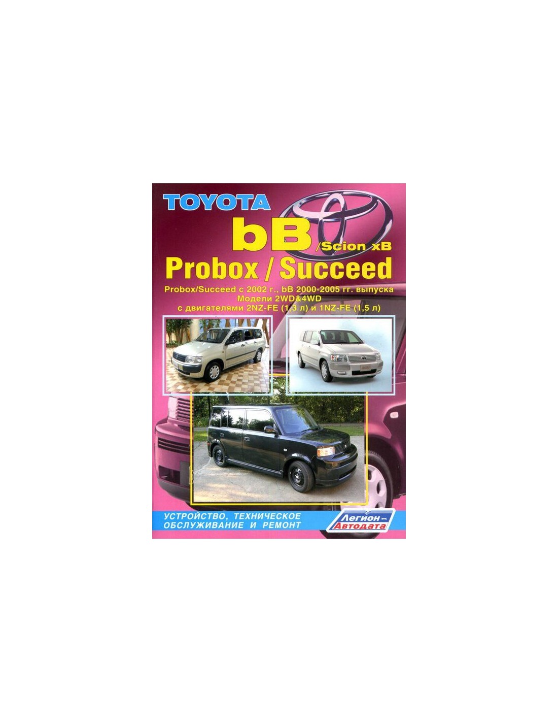 Устройство автомобиля,возможные неисправности и методы их устранения, сопрягаемые размеры основных деталей и пределы их допустимого износа,рекомендуемое смазочные материалы,рабочие жидкости и каталожные номера расходных запчастей,необходимых для технического обслуживания,размеры рекомендуемых и допускаемых шин и дисков-все это можно найти на страницах издания "Легион-Автодата" Книга автомобильная на Toyota Probox/Succeed c 2002 г.