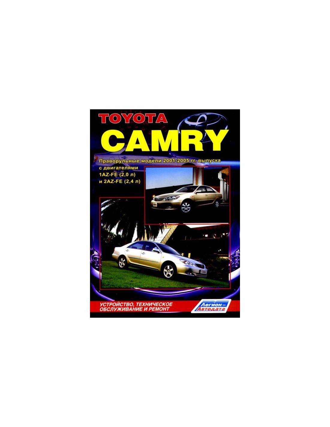 Устройство автомобиля,возможные неисправности и методы их устранения, сопрягаемые размеры основных деталей и пределы их допустимого износа,рекомендуемое смазочные материалы,рабочие жидкости и каталожные номера расходных запчастей,необходимых для технического обслуживания,размеры рекомендуемых и допускаемых шин и дисков-все это можно найти на страницах издания "Легион-Автодата" Книга автомобильная на Toyota Camry 2001-05 г.