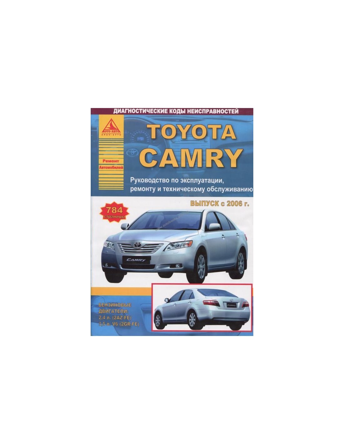 Устройство автомобиля,возможные неисправности и методы их устранения, сопрягаемые размеры основных деталей и пределы их допустимого износа,рекомендуемое смазочные материалы,рабочие жидкости и т.п-все это можно найти на страницах издания "Атласы-автомобильные" Книга автомобильная на Toyota Camry 2006-11г.