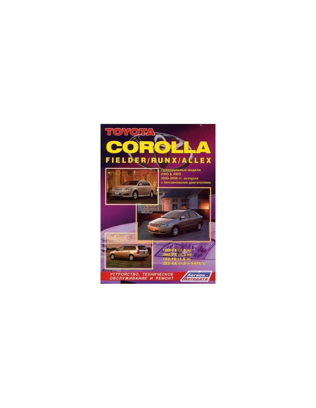 Устройство автомобиля,возможные неисправности и методы их устранения, сопрягаемые размеры основных деталей и пределы их допустимого износа,рекомендуемое смазочные материалы,рабочие жидкости и каталожные номера расходных запчастей,необходимых для технического обслуживания,размеры рекомендуемых и допускаемых шин и дисков-все это можно найти на страницах издания "Легион-Автодата" Книга автомобильная на Toyota Corolla / Fielder / Runx / Allex (праворуль) 2000-06 г.