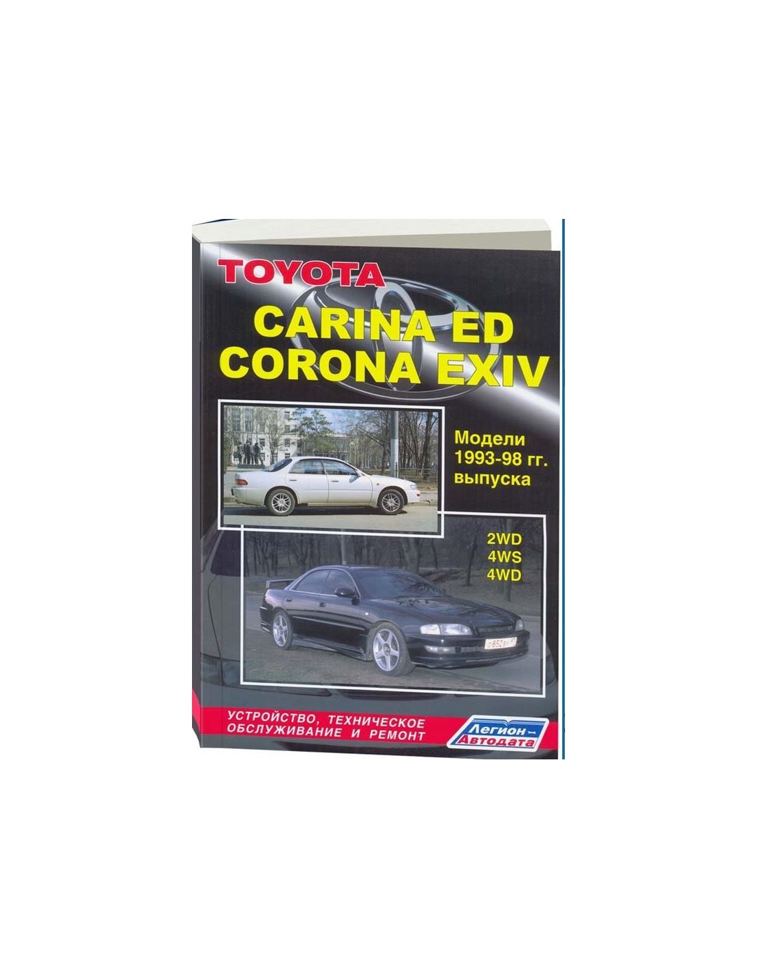 Устройство автомобиля,возможные неисправности и методы их устранения, сопрягаемые размеры основных деталей и пределы их допустимого износа,рекомендуемое смазочные материалы,рабочие жидкости и каталожные номера расходных запчастей,необходимых для технического обслуживания,размеры рекомендуемых и допускаемых шин и дисков-все это можно найти на страницах издания "Легион-Автодата" Книга автомобильная на Toyota Carina ED/ Corona Exiv 1993-98 г.