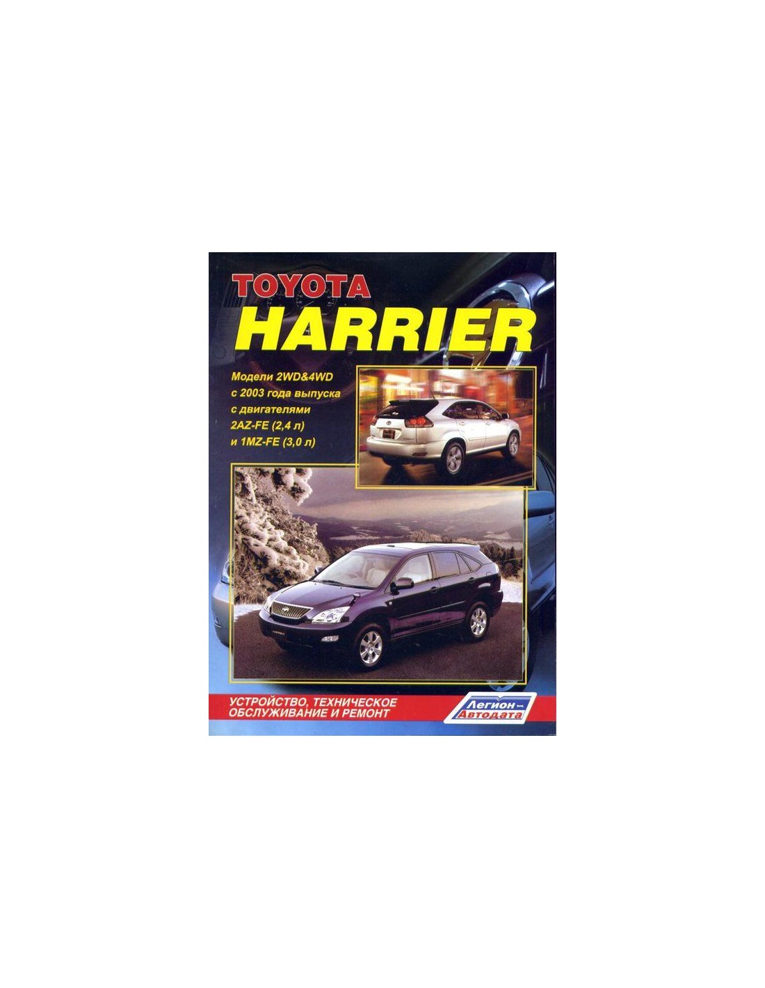 Книга по ремонту Toyota Harrier 2003-12 г.,содержит руководство по эксплуатации,подробные сведения по техническому обслуживанию автомобиля,диагностике ремонту и регулировке элементов систем двигателя,в том числе электронного управления двигателем,систему смазки и охлаждения,запуска и зарядки,элементов механических и автоматических коробок передач,раздаточной коробки,тормозной системы,включая антиблокировочную систему тормозов,рулевого управления,подвески,кузовных элементов, систем кондиционирования и вентиляции.