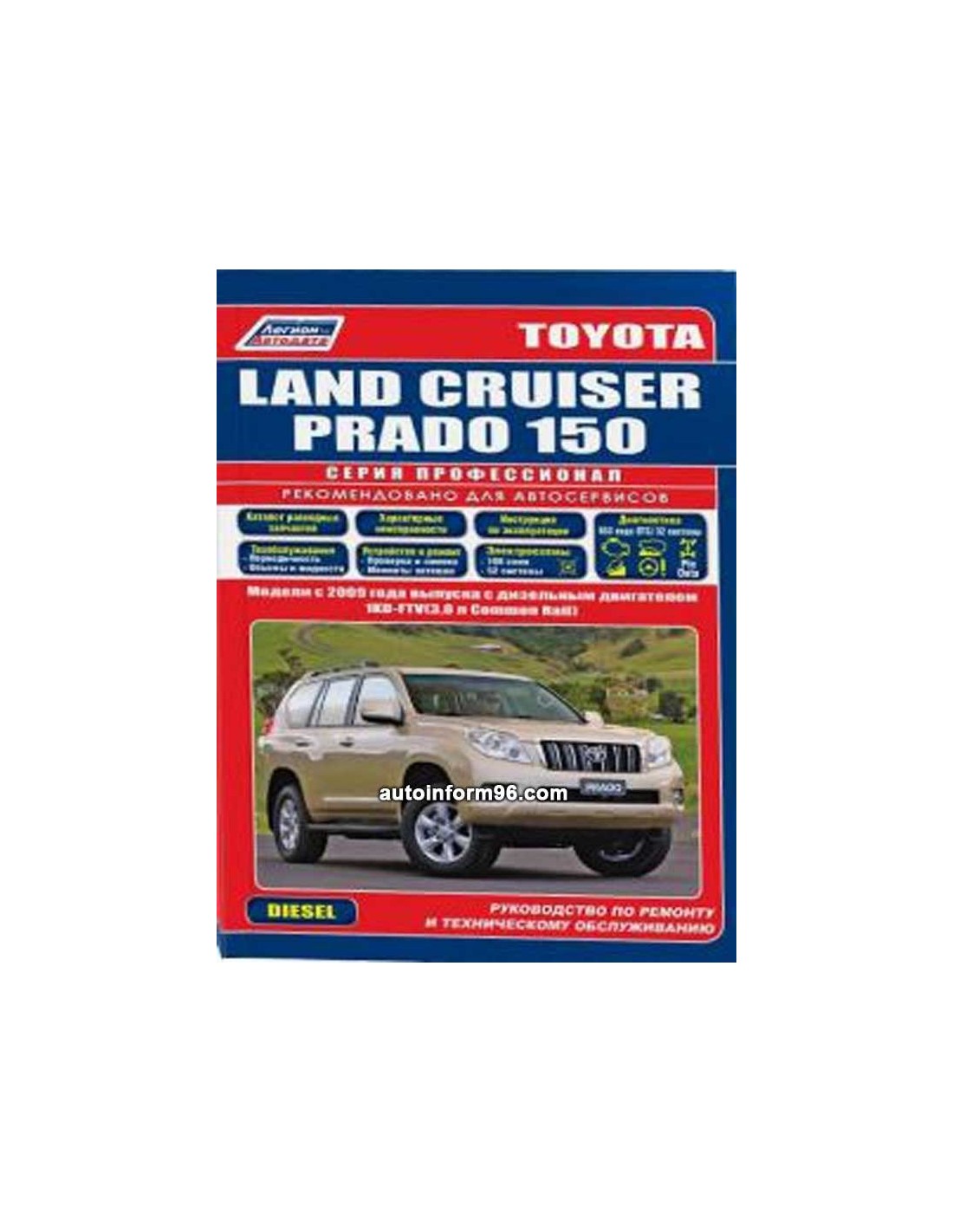 Устройство автомобиля,возможные неисправности и методы их устранения, сопрягаемые размеры основных деталей и пределы их допустимого износа,рекомендуемое смазочные материалы,рабочие жидкости и каталожные номера расходных запчастей,необходимых для технического обслуживания,размеры рекомендуемых и допускаемых шин и дисков-все это можно найти на страницах издания "Легион-Автодата" Книга автомобильная на Toyota Land Cruiser Prado 150 с 2009 г.