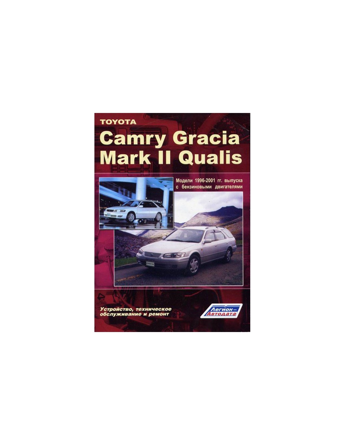 Устройство автомобиля,возможные неисправности и методы их устранения, сопрягаемые размеры основных деталей и пределы их допустимого износа,рекомендуемое смазочные материалы,рабочие жидкости и каталожные номера расходных запчастей,необходимых для технического обслуживания,размеры рекомендуемых и допускаемых шин и дисков-все это можно найти на страницах издания "Легион-Автодата" Книга автомобильная на Toyota Camry Gracia / Mark II Qualis 2WD&4WD 1996-01 г.
