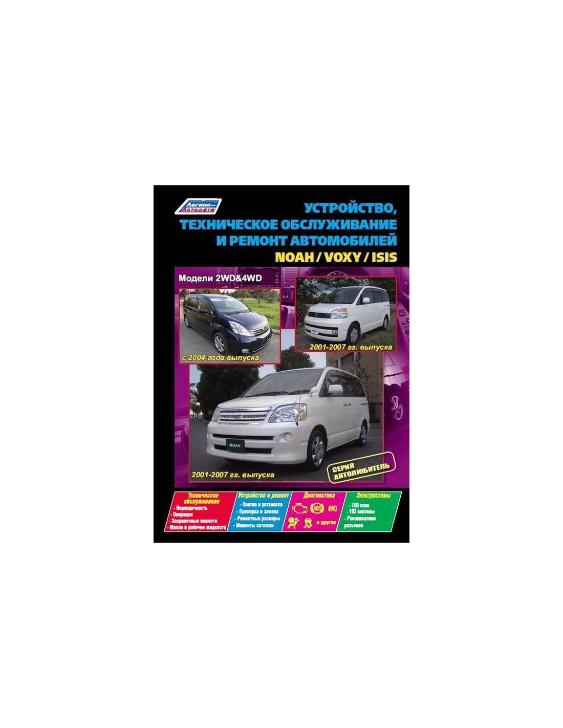 Устройство автомобиля,возможные неисправности и методы их устранения, сопрягаемые размеры основных деталей и пределы их допустимого износа,рекомендуемое смазочные материалы,рабочие жидкости и каталожные номера расходных запчастей,необходимых для технического обслуживания,размеры рекомендуемых и допускаемых шин и дисков-все это можно найти на страницах издания "Легион-Автодата" Книга автомобильная на Toyota Noah/Voxy 2001-07 г.