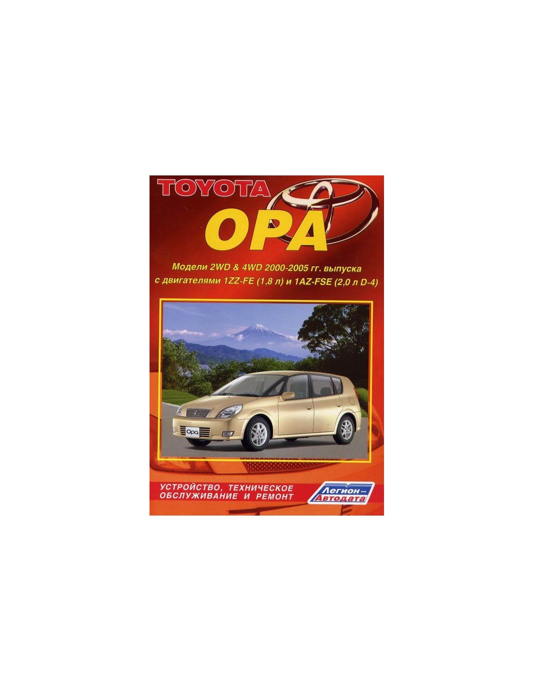 Книга по ремонту Toyota Opa 2000-05 г.,содержит руководство по эксплуатации,подробные сведения по техническому обслуживанию автомобиля,диагностике ремонту и регулировке элементов систем двигателя,в том числе электронного управления двигателем,систему смазки и охлаждения,запуска и зарядки,элементов механических и автоматических коробок передач,раздаточной коробки,тормозной системы,включая антиблокировочную систему тормозов,рулевого управления,подвески,кузовных элементов, систем кондиционирования и вентиляции.