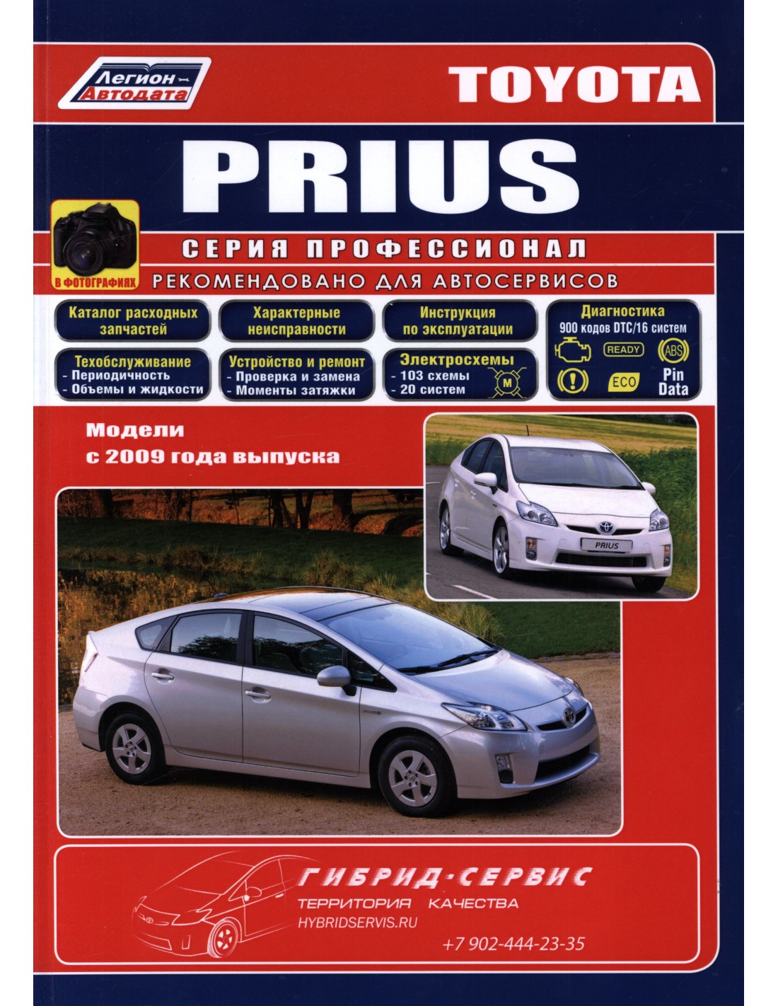Устройство автомобиля,возможные неисправности и методы их устранения, сопрягаемые размеры основных деталей и пределы их допустимого износа,рекомендуемое смазочные материалы,рабочие жидкости и каталожные номера расходных запчастей,необходимых для технического обслуживания,размеры рекомендуемых и допускаемых шин и дисков-все это можно найти на страницах издания "Легион-Автодата" Книга автомобильная на Toyota PRIUS c 2009 г.