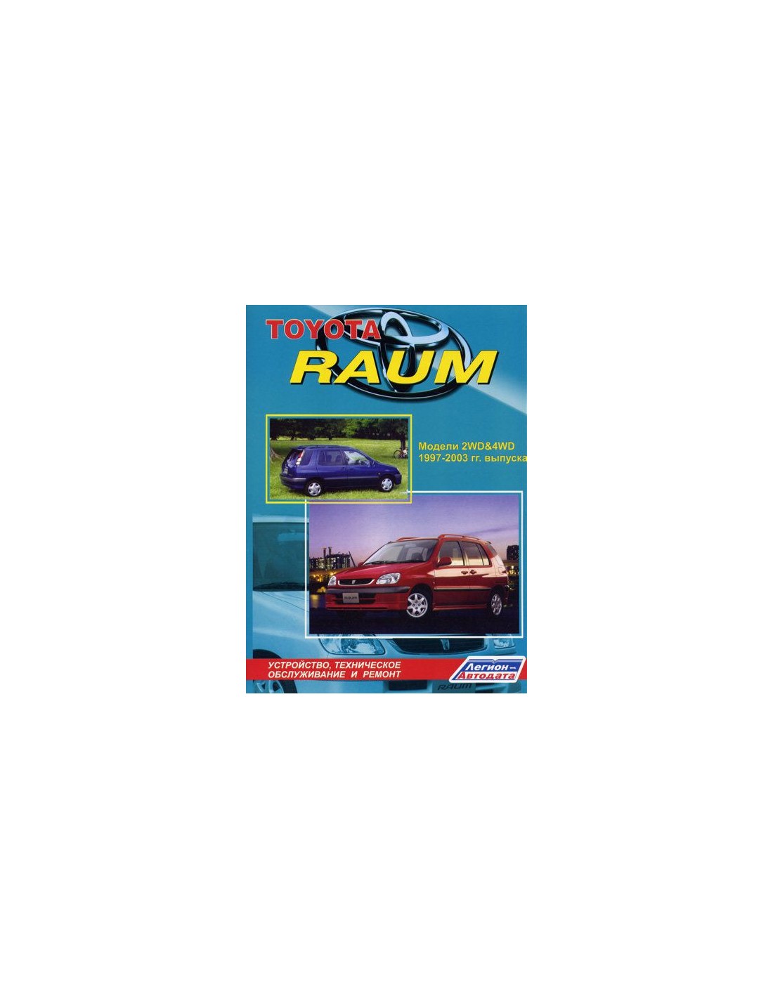 Книга по ремонту Toyota Raum 1997-03 г.,содержит руководство по эксплуатации,подробные сведения по техническому обслуживанию автомобиля,диагностике ремонту и регулировке элементов систем двигателя,в том числе электронного управления двигателем,систему смазки и охлаждения,запуска и зарядки,элементов механических и автоматических коробок передач,раздаточной коробки,тормозной системы,включая антиблокировочную систему тормозов,рулевого управления,подвески,кузовных элементов, систем кондиционирования и вентиляции.
