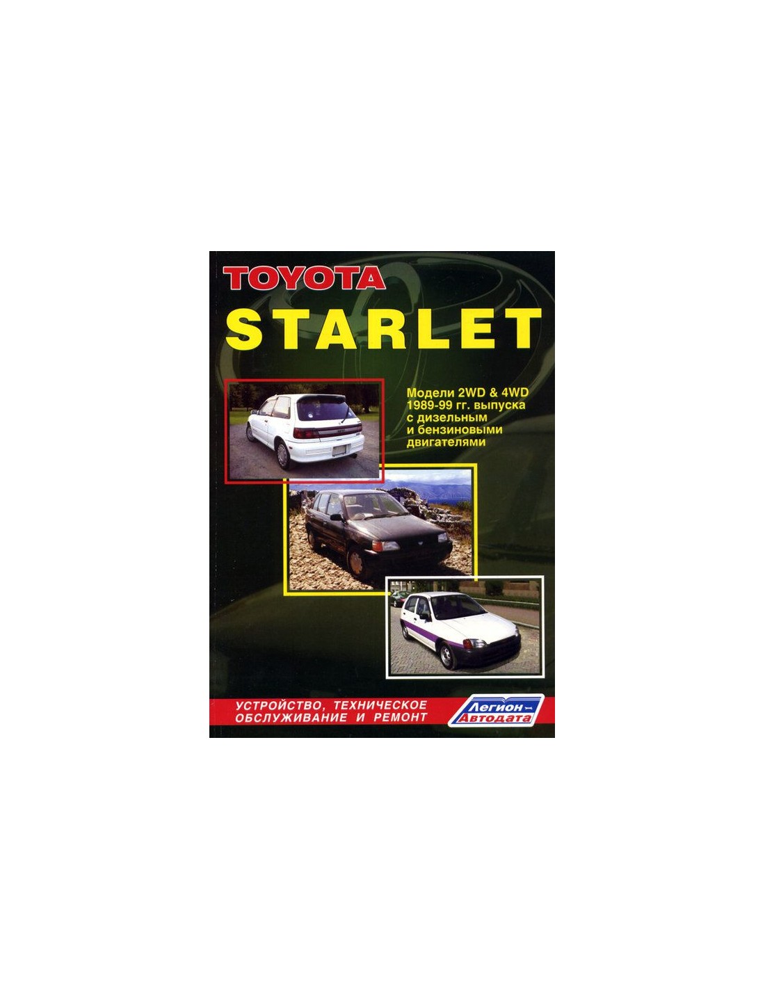 Устройство автомобиля,возможные неисправности и методы их устранения, сопрягаемые размеры основных деталей и пределы их допустимого износа,рекомендуемое смазочные материалы,рабочие жидкости и каталожные номера расходных запчастей,необходимых для технического обслуживания,размеры рекомендуемых и допускаемых шин и дисков-все это можно найти на страницах издания "Легион-Автодата" Книга автомобильная на Toyota Starlet 1989-99 г.