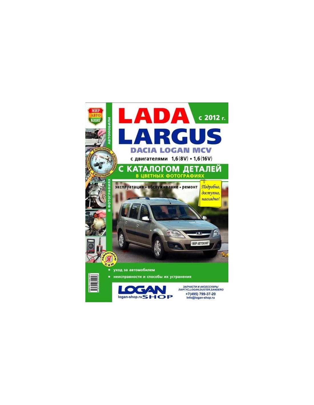 Книга по ремонту Lada Largus с каталогом. ,содержит руководство по эксплуатации,общие сведения об устройстве автомобиля,рекомендации по техническому обслуживанию автомобиля,диагностике ремонту и регулировке элементов систем двигателя,систему смазки и охлаждения,запуска и зарядки,элементов механических и автоматических коробок передач,тормозной системы,включая антиблокировочную систему тормозов,рулевого управления,подвески,кузовных элементов, систем кондиционирования и вентиляции.