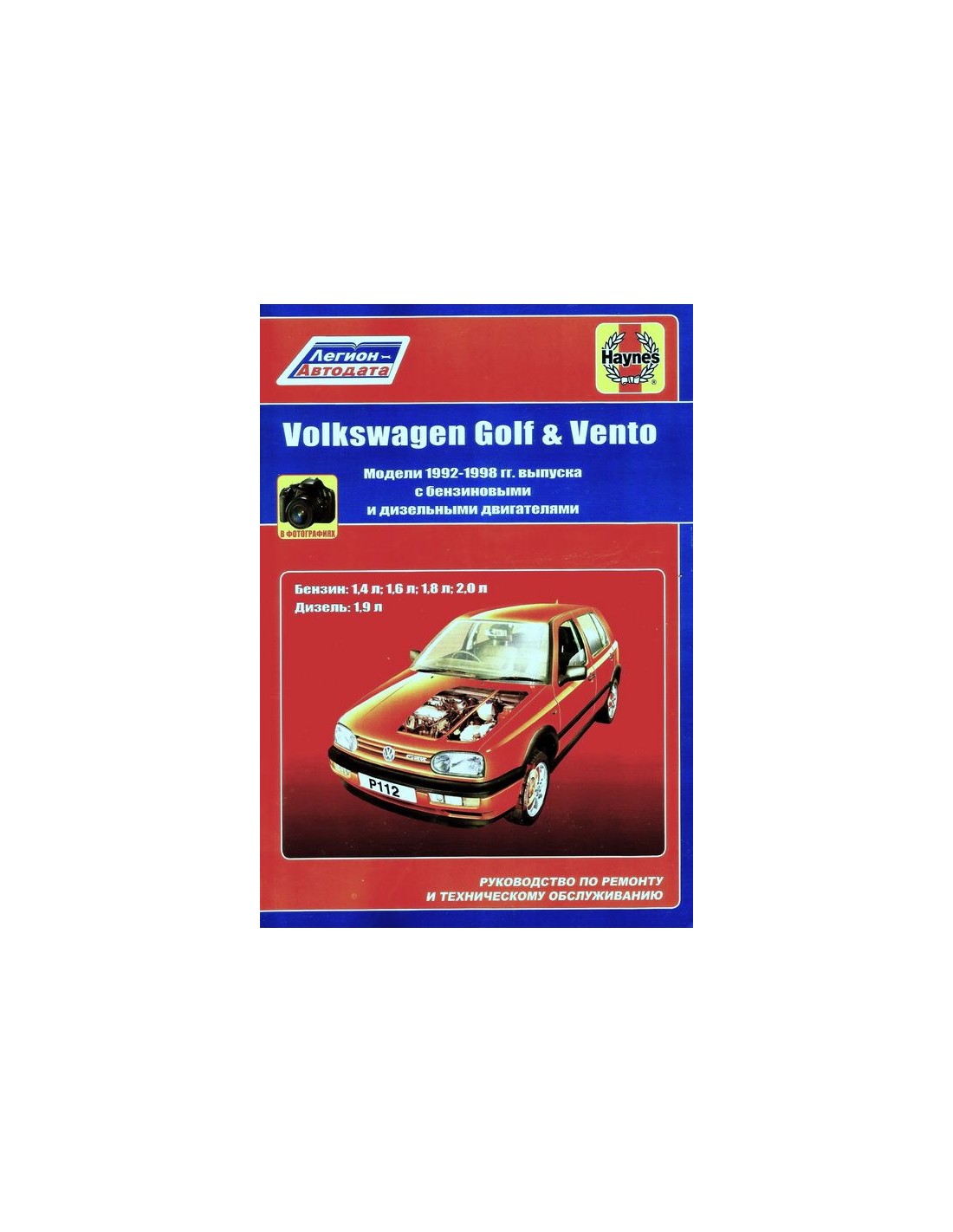 Книга по ремонту Volkswagen Golf 3, Volkswagen Vento 1992-96 г.,содержит руководство по эксплуатации,подробные сведения по техническому обслуживанию автомобиля,диагностике ремонту и регулировке элементов систем двигателя,в том числе электронного управления двигателем,систему смазки и охлаждения,запуска и зарядки,элементов механических и автоматических коробок передач,раздаточной коробки,тормозной системы,включая антиблокировочную систему тормозов,рулевого управления,подвески,кузовных элементов, систем кондиционирования и вентиляции.