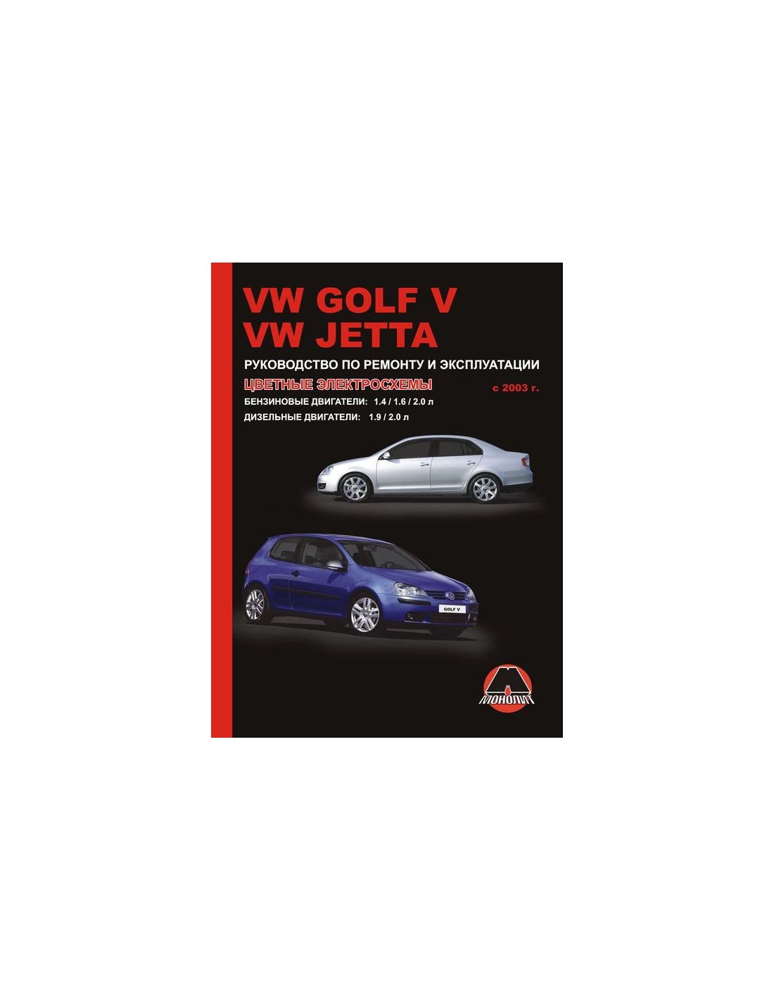 Книга по ремонту Volkswagen Golf V/Jetta c 2003 г ,содержит руководство по эксплуатации,подробные сведения по техническому обслуживанию автомобиля,диагностике ремонту и регулировке элементов систем двигателя,в том числе электронного управления двигателем,систему смазки и охлаждения,запуска и зарядки,элементов механических и автоматических коробок передач,раздаточной коробки,тормозной системы,включая антиблокировочную систему тормозов,рулевого управления,подвески,кузовных элементов, систем кондиционирования и вентиляции.