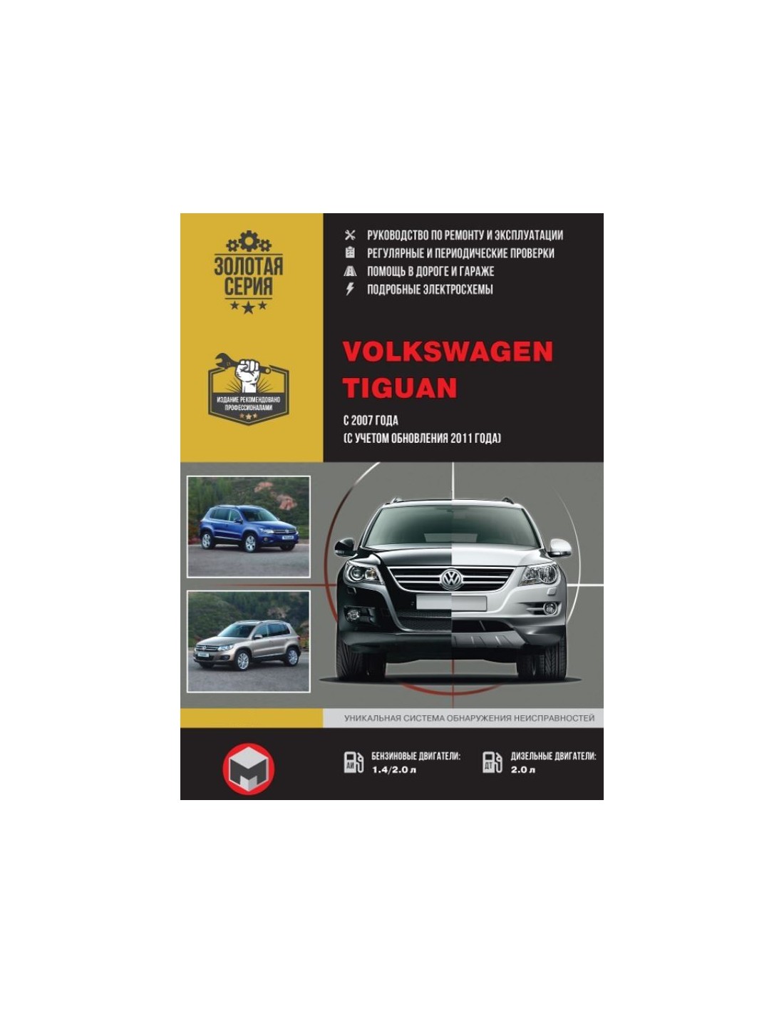 Книга по ремонту Volkswagen Tiguan с 2007 ,содержит руководство по эксплуатации,подробные сведения по техническому обслуживанию автомобиля,диагностике ремонту и регулировке элементов систем двигателя,в том числе электронного управления двигателем,систему смазки и охлаждения,запуска и зарядки,элементов механических и автоматических коробок передач,раздаточной коробки,тормозной системы,включая антиблокировочную систему тормозов,рулевого управления,подвески,кузовных элементов, систем кондиционирования и вентиляции.