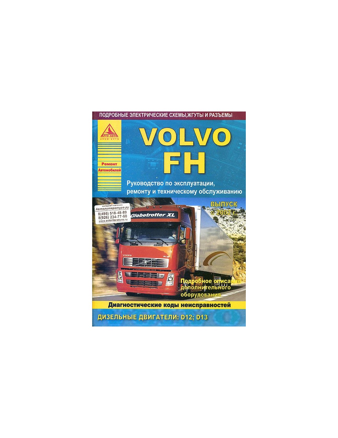 Книга по ремонту Volvo FH с 2002 г. (в 2-х томах 1240 стр.),содержит руководство по эксплуатации,подробные сведения по техническому обслуживанию автомобиля,систему смазки и охлаждения,запуска и зарядки,элементов механических и автоматических коробок передач,тормозной системы,включая антиблокировочную систему тормозов,рулевого управления,подвески,кузовных элементов, систем кондиционирования и вентиляции.